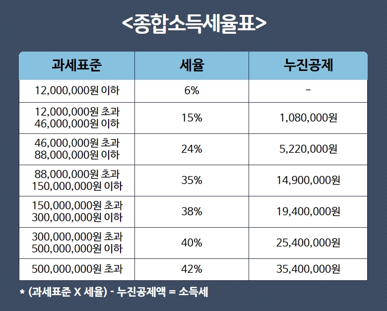 한국에서는 50,000,000 X 24% - 5,220,000 = 6,780,000원 을 세금으로 내야하고