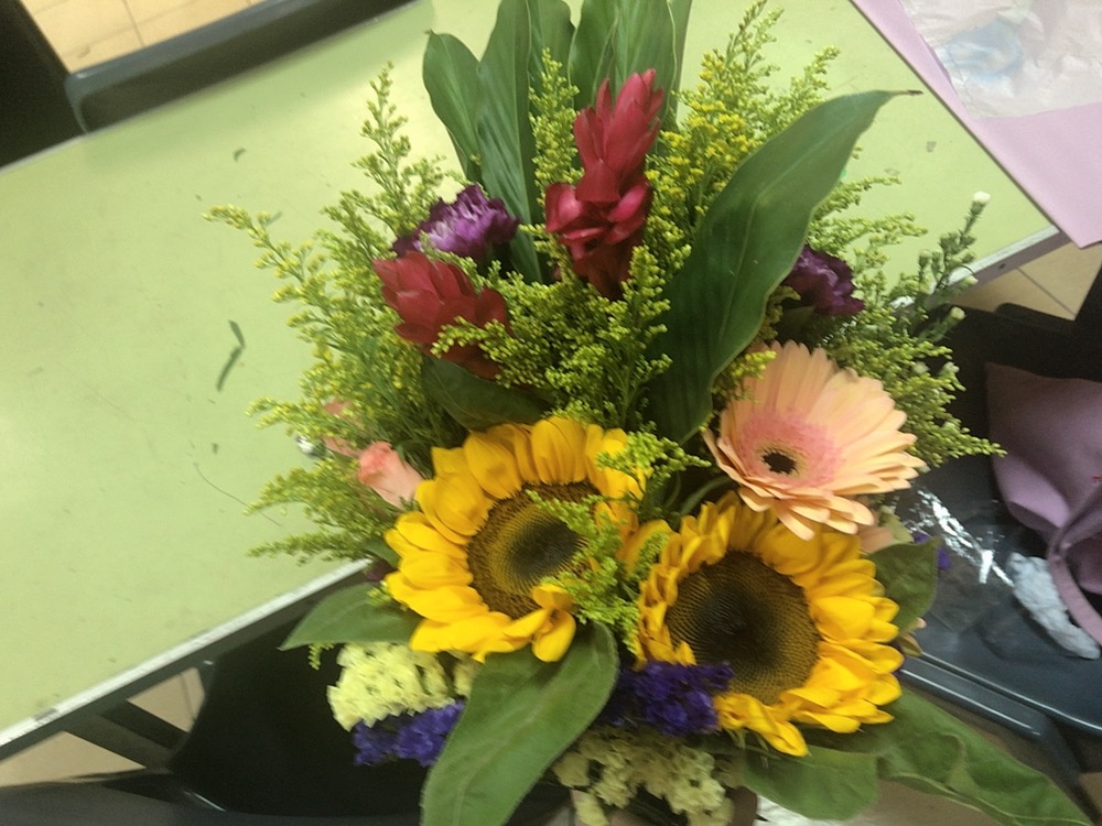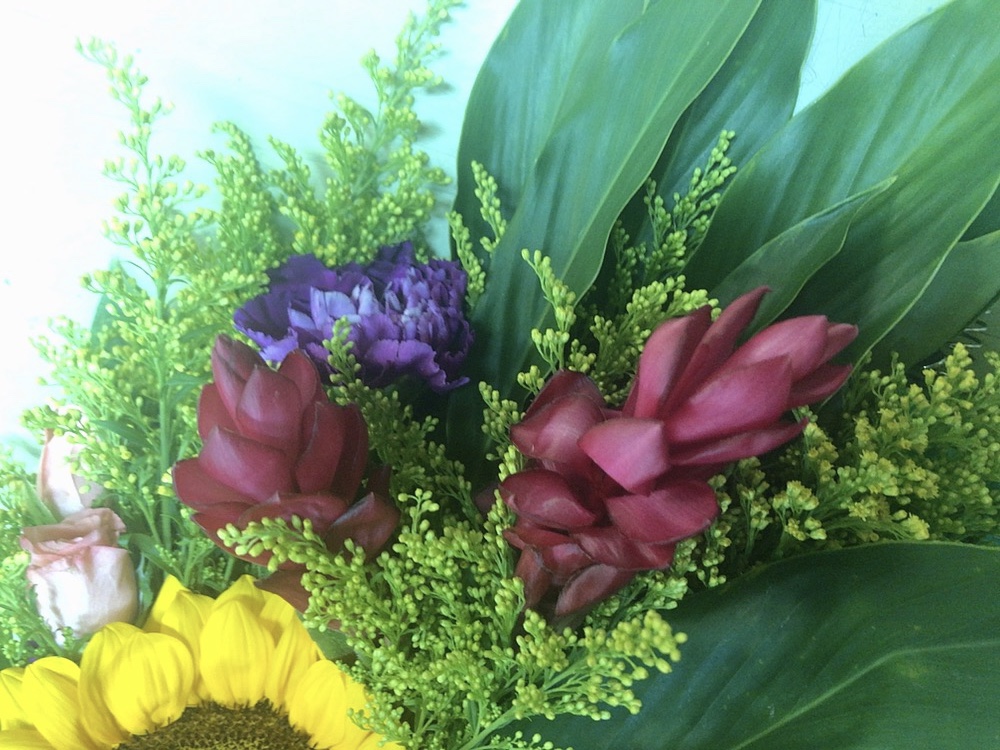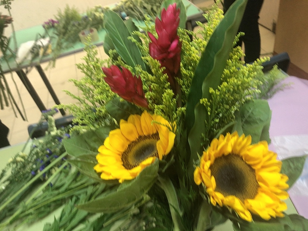 먼저 말레이시아가 원산지인 Red ginger 붉은 꽃생강과 해바라기를 기준으로 Golden Phoenixe으로 쿠션을 넣어주며 기초를 잡는다.