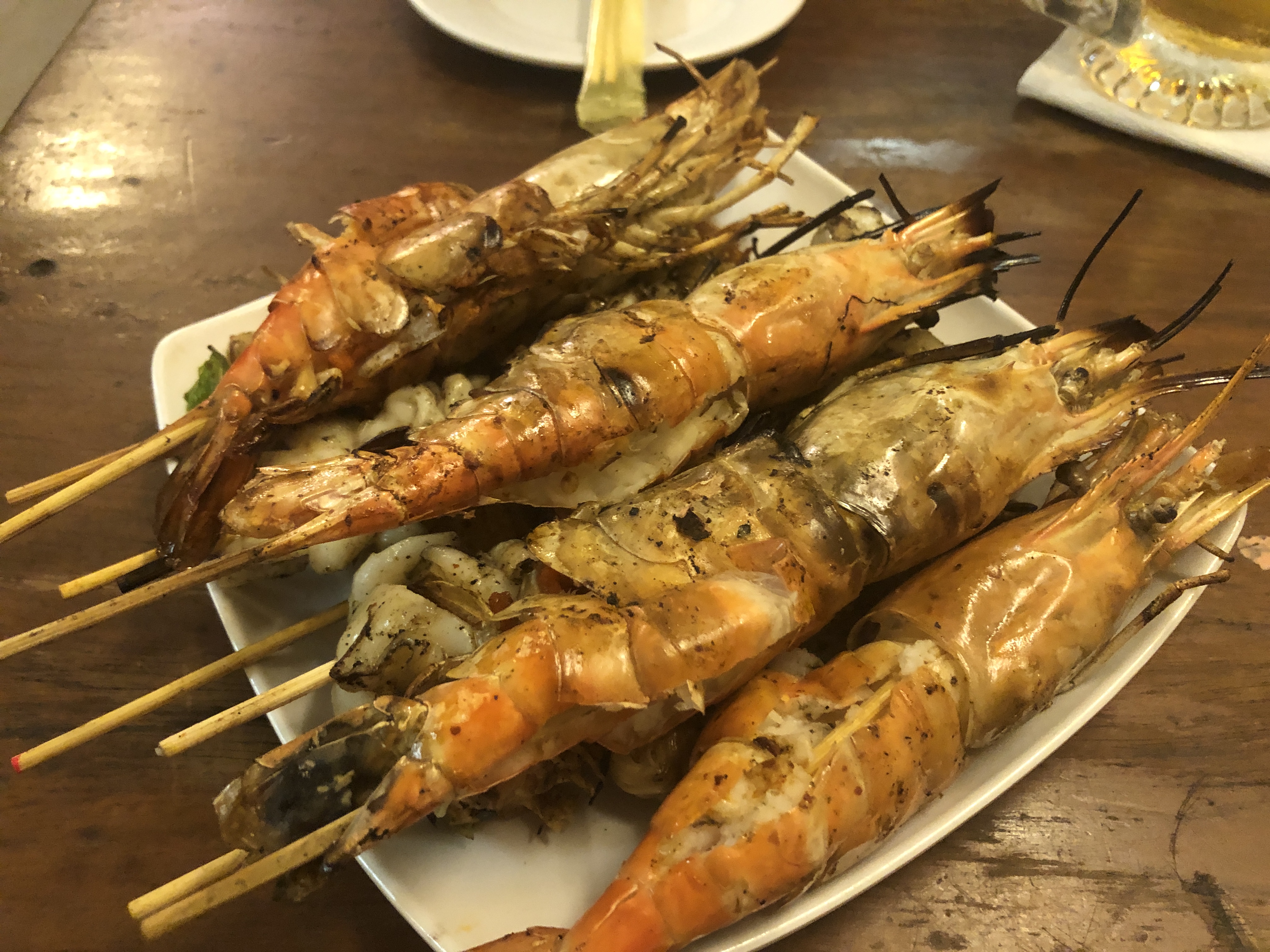 밤이 되니 이렇게 야외에 자리를 펴 술과 꼬치요리를 많이들 먹고 있었다.