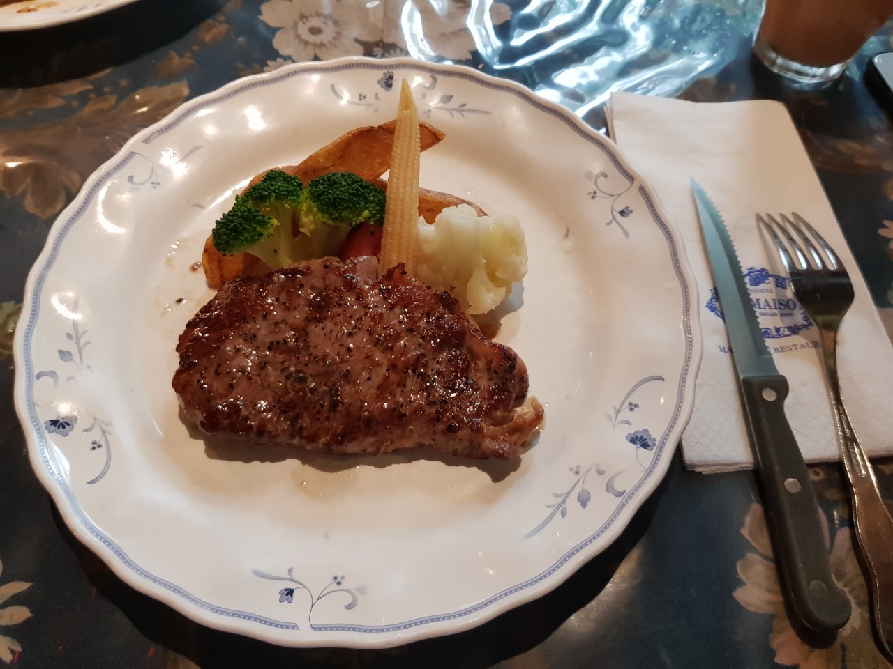 이전엔 디너로 가서 95SGD++(약 95,000원) 스테이크를 썰었는데..