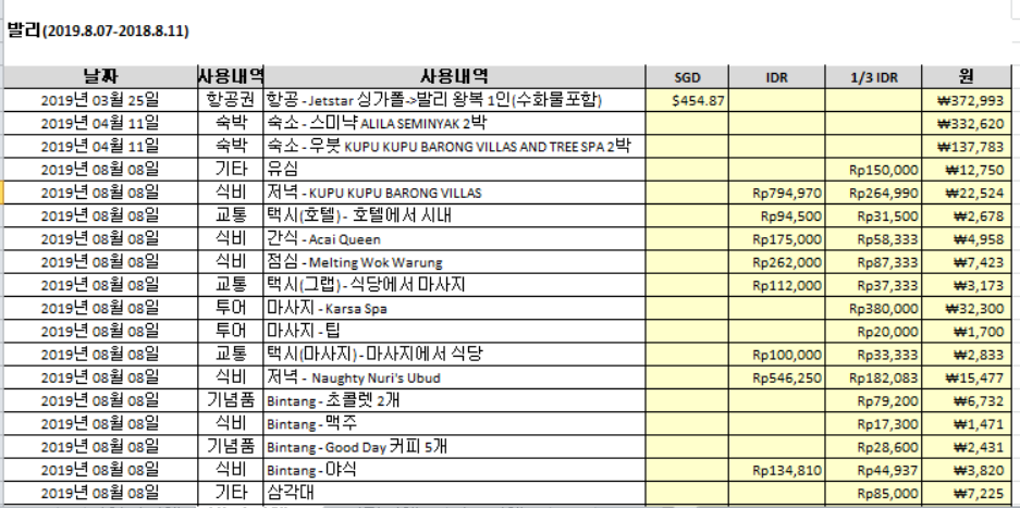 최근 발리여행 경비와 기념품은 아래 포스팅에서!