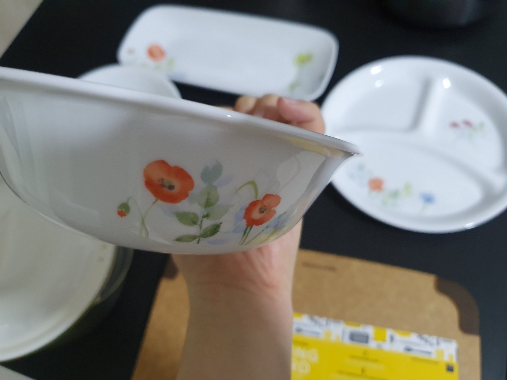 그릇은 가벼운게 짱이었다... 코렐짱... 디자인이 너무 화이트화이트 해서 고려했었는데, 디자인이 뭔 소용이냐 설거지 할 때마다 손목 아픈거 생각하면 그릇은 무조건 가볍고 잘 안깨지는 코렐이었다..