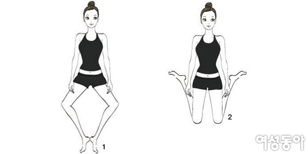 ·무릎 벌리기가 편하다면 벌어진 골반→골반 닫기 체조 실시