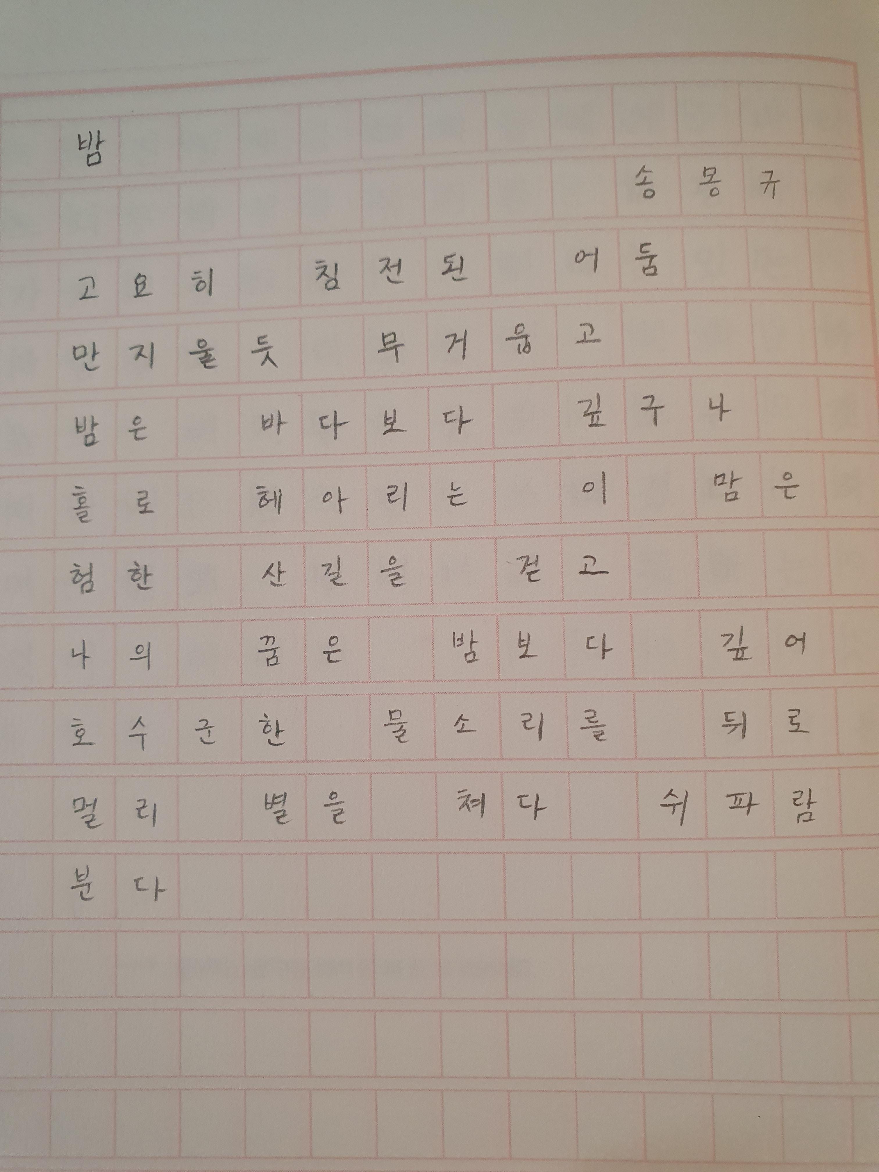 [필사] 김용택의 시 - 그 여자네 집 2019년 12월 20일 2018/10/14 - [안녕하세요/취미찾기] - [필사] 박노해의 시 - 지문을 부른다 [필사] 박노해의 시 - 지문을 부른다 [필사] 박노해의 시 - 지문을 부른다 2018..