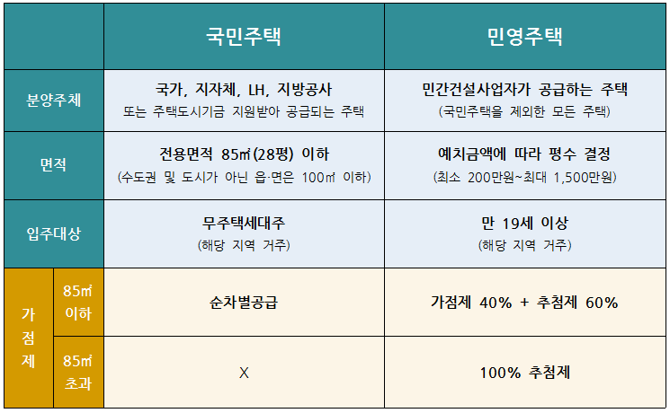 <국민주택 VS 민영주택> 청약 1순위 조건도 다르다?!