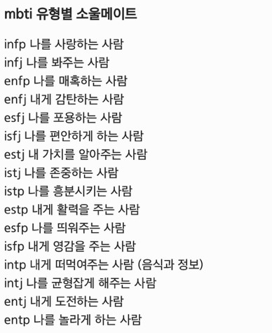 그리고 마지막 MBTI 유형별 궁합
