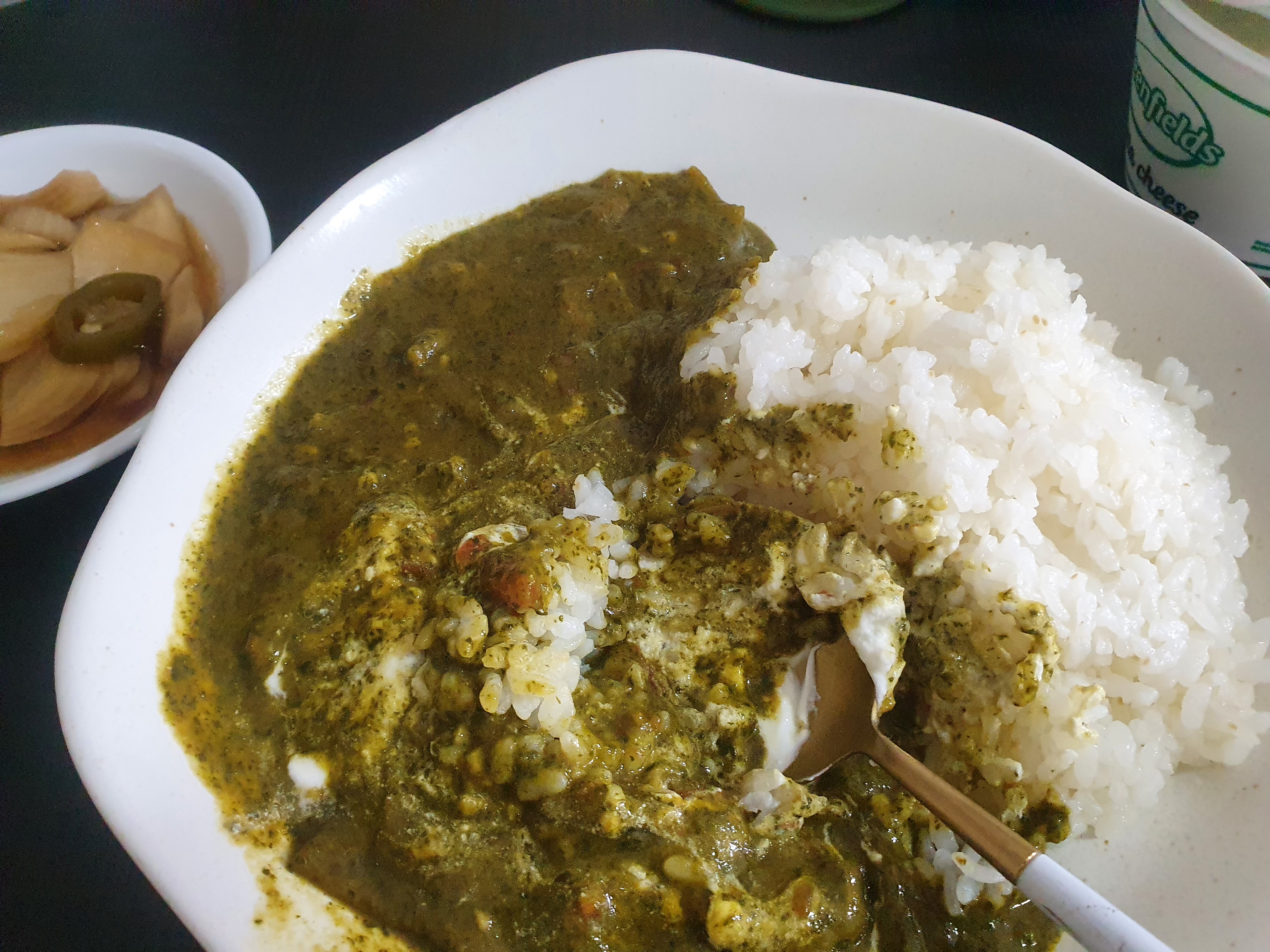 팔락은 시금치를 뜻하고 파니르는 치즈 이름이다. 채식주의자 커리로 만들기 좋은 팔락 파니르! 싱가포르에선 당연히 파니르 치즈가 넘치겠지 했는데 은근 잘 안 판다;; 유럽 치즈만 많이 팔고...