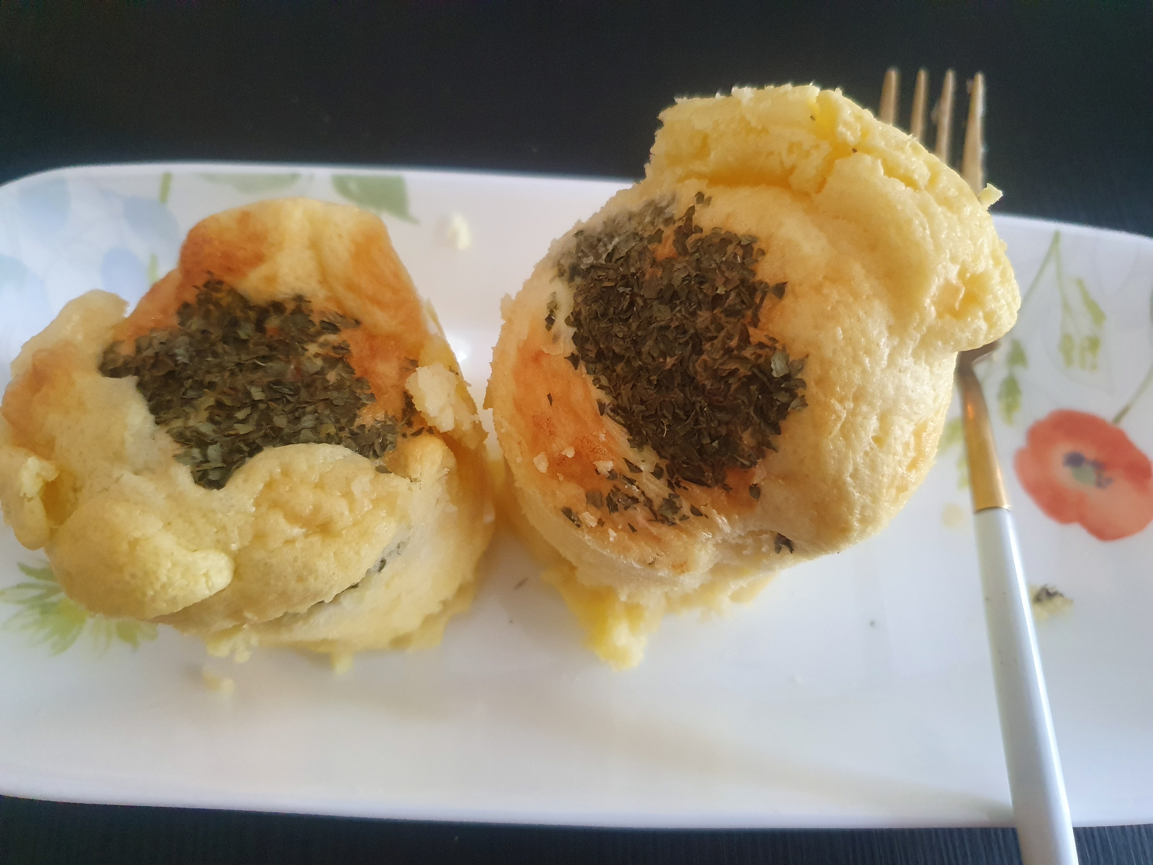 응용으로 위에 베이컨이나 치즈를 얹어도 됨! 고온에 하면 계란이 타므로 160도 15분을 돌려주고 중간중간 에프를 열어 혹시 타고 있는지 확인해 준다. 그리고 젓가락을 넣어을 때 묽은 반죽이 안 묻어 나오면 잘 익었다는 뜻! 식힌 후 종이컵을 가위로 잘라 계란빵을 꺼내면 된다.