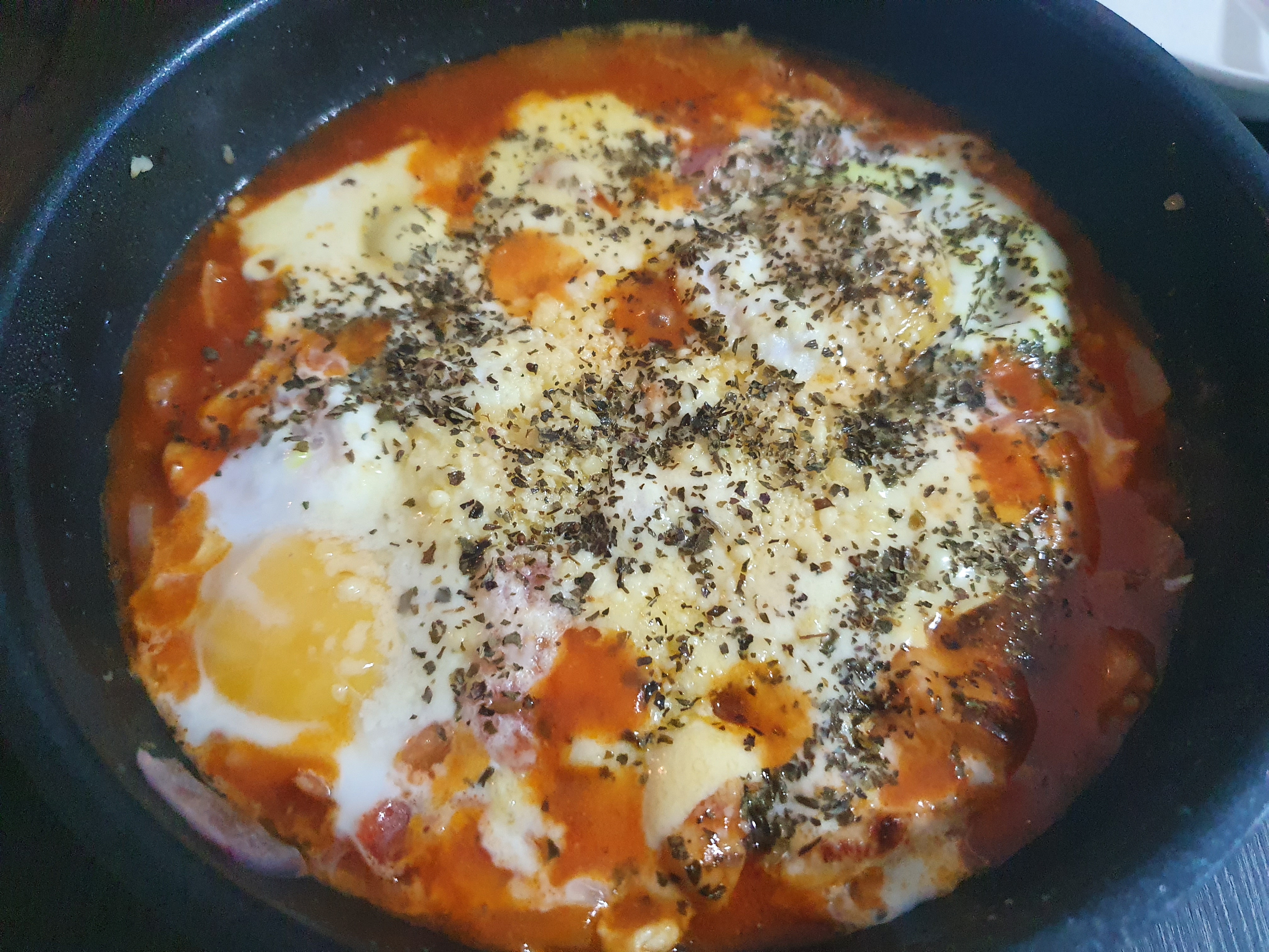 에그 인 헬(샥슈카)은 계란을 넣은 토마토 스튜인데 보통 빵이랑 같이 먹는다. 처음 해 먹고 토마토 소스와 계란 반숙이 넘 잘어울려서 놀랬었지.. 기본 에그인헬은 이전 포스팅에 레시피를 올려놨었다.