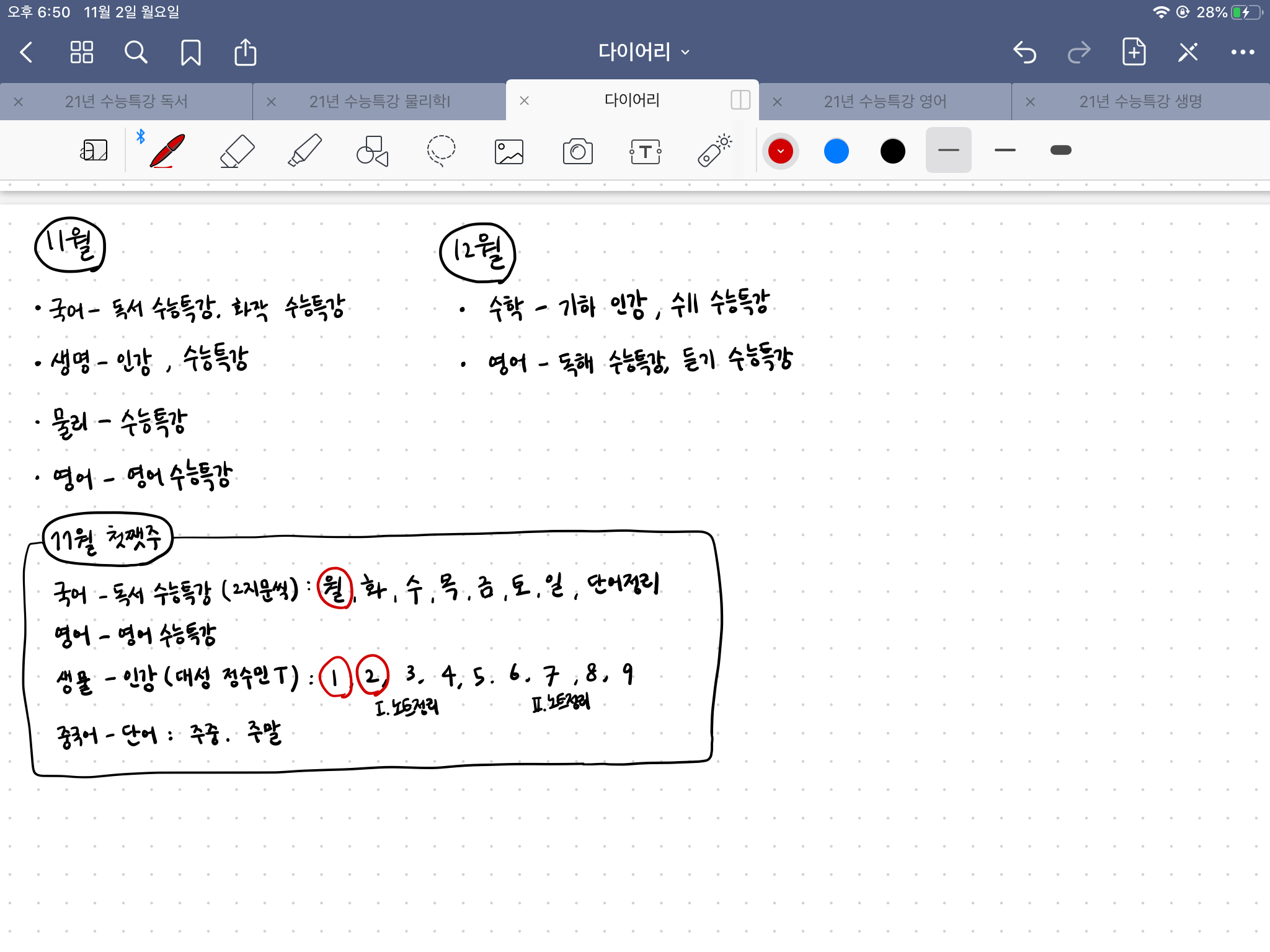 최근엔 사설 인강 패스권도 구매해서 인강들은 모두 아이패드로 잘 보고 있다. 수능 공부 아니어도 공무원/경찰/임용 준비생들에게도 태블릿 PC는 필수품이 된 거 같다.