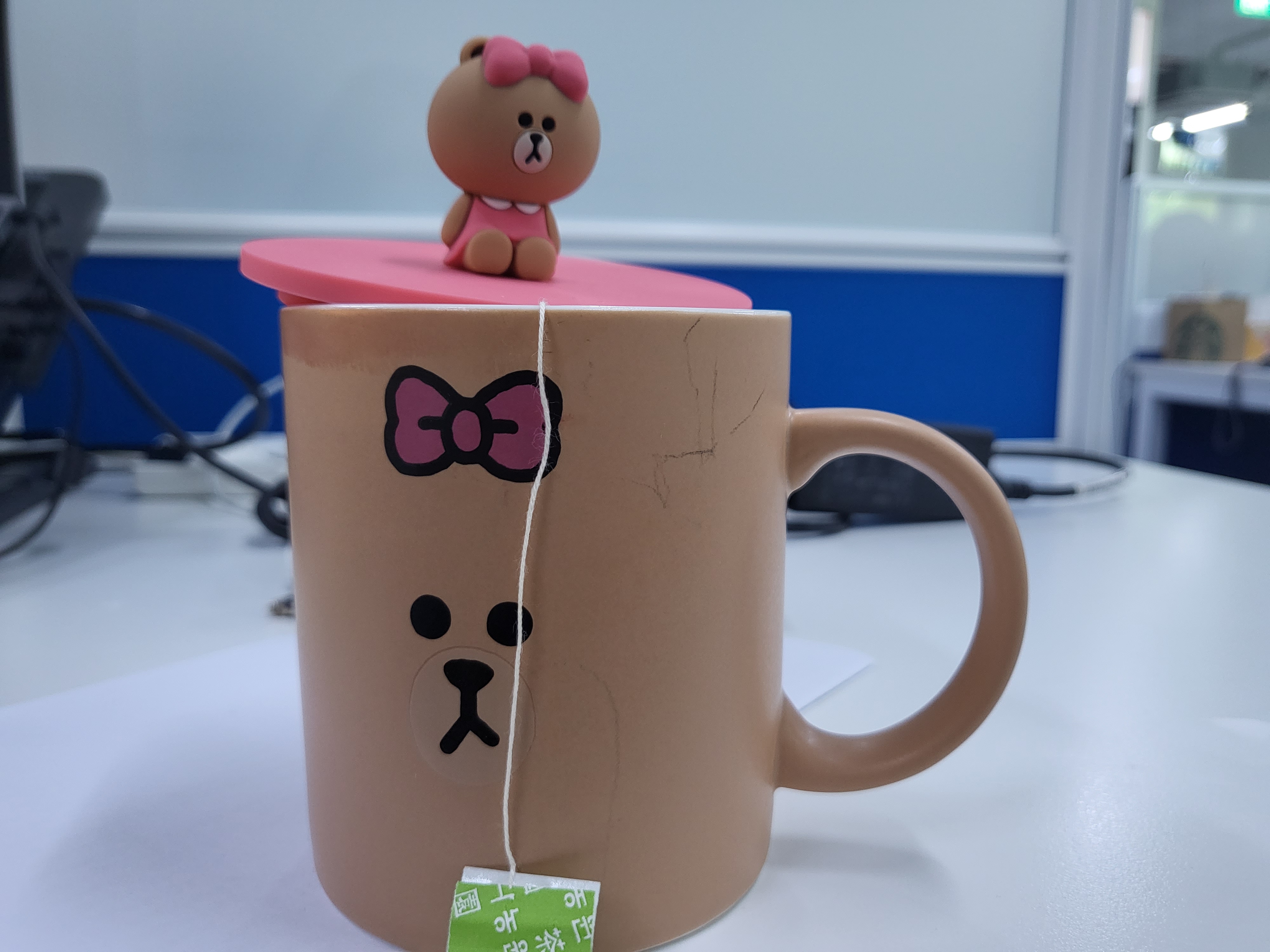 사놓고 안 쓰다가 요즘 출근을 자주해 사무실에서 쓰고 있다. 초코 머그컵 뚜껑을 샀다가 냄새가 나서 못쓰고 있다는 글을 이전 포스팅에 적었었는데 이번 뚜껑은 냄새가 안 난다! 컵도 보온도 잘돼서 따뜻한 차를 많이 마시고 있다. 넘 귀여움!
