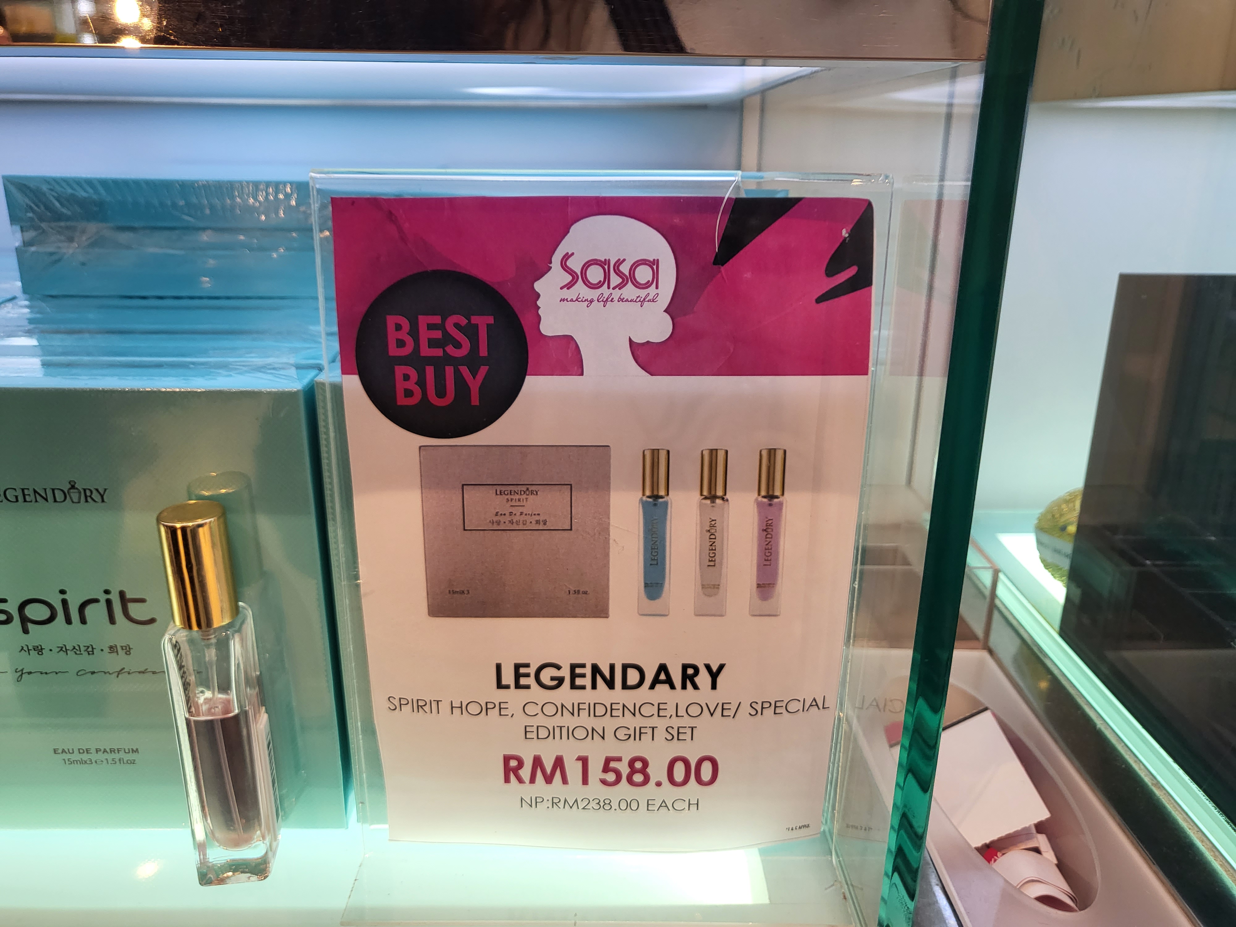 그리고 추억의 SaSa 매장이 있었는데 여기서 말레이시아에서 많이 사간다는 레전더리 Legendary 향수 시향을 했다. 엄청 기대했는데 향은 평범한 꽃 향기였다. 시향지에 뿌려서 밖에 들고 갔는데 이거 때문에 벌레가 많이 붙음.. 동남아에서 꽃 향수는 조심하세요!