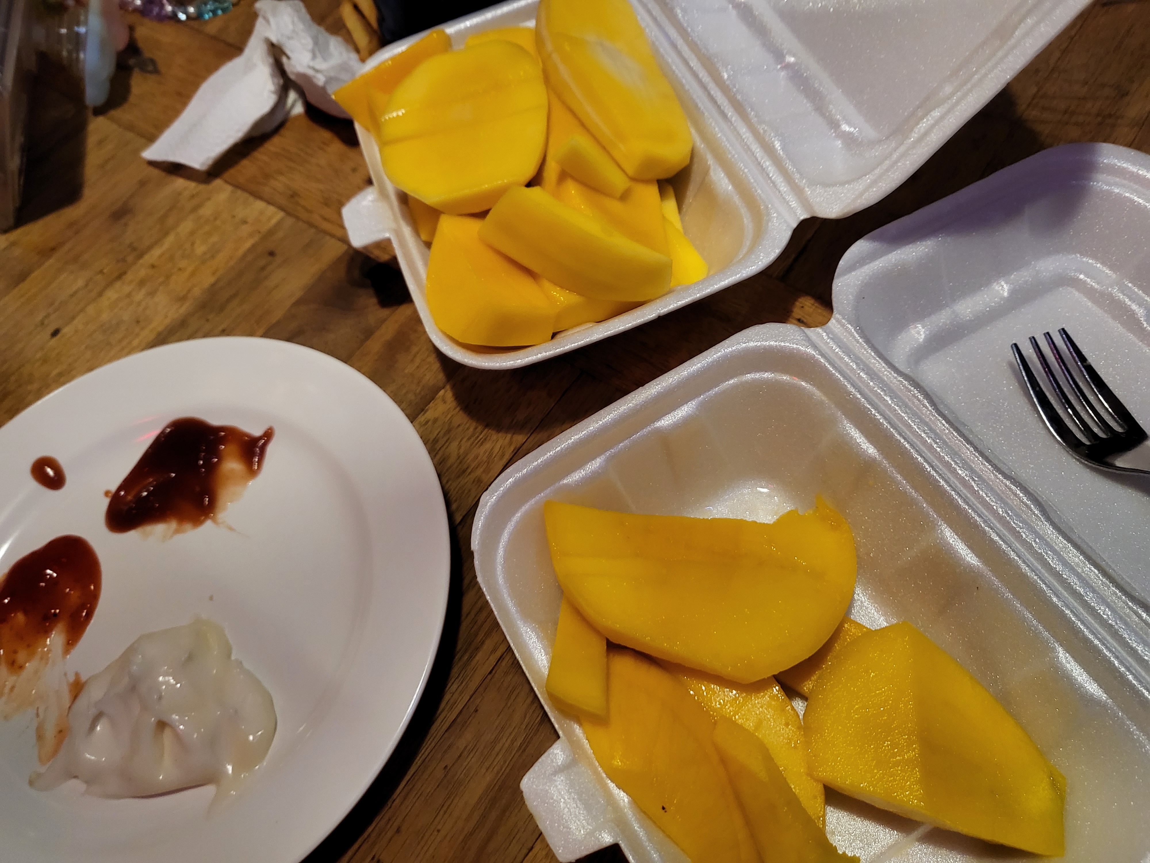 난 완전 익어서 말랑거리는 망고를 좋아하는데 여기서 산 애플망고, 허니망고, 그린 망고는 모두 좀 단단하고 풋내가 나서 그냥 그랬다. 친구는 그런 맛이 좋다고 맛있게 먹었는데 미안하지만 그럴 거면 그냥 동남아 길거리 망고 나무에서 떨어진 망고 주워 먹어도 될 듯...^^