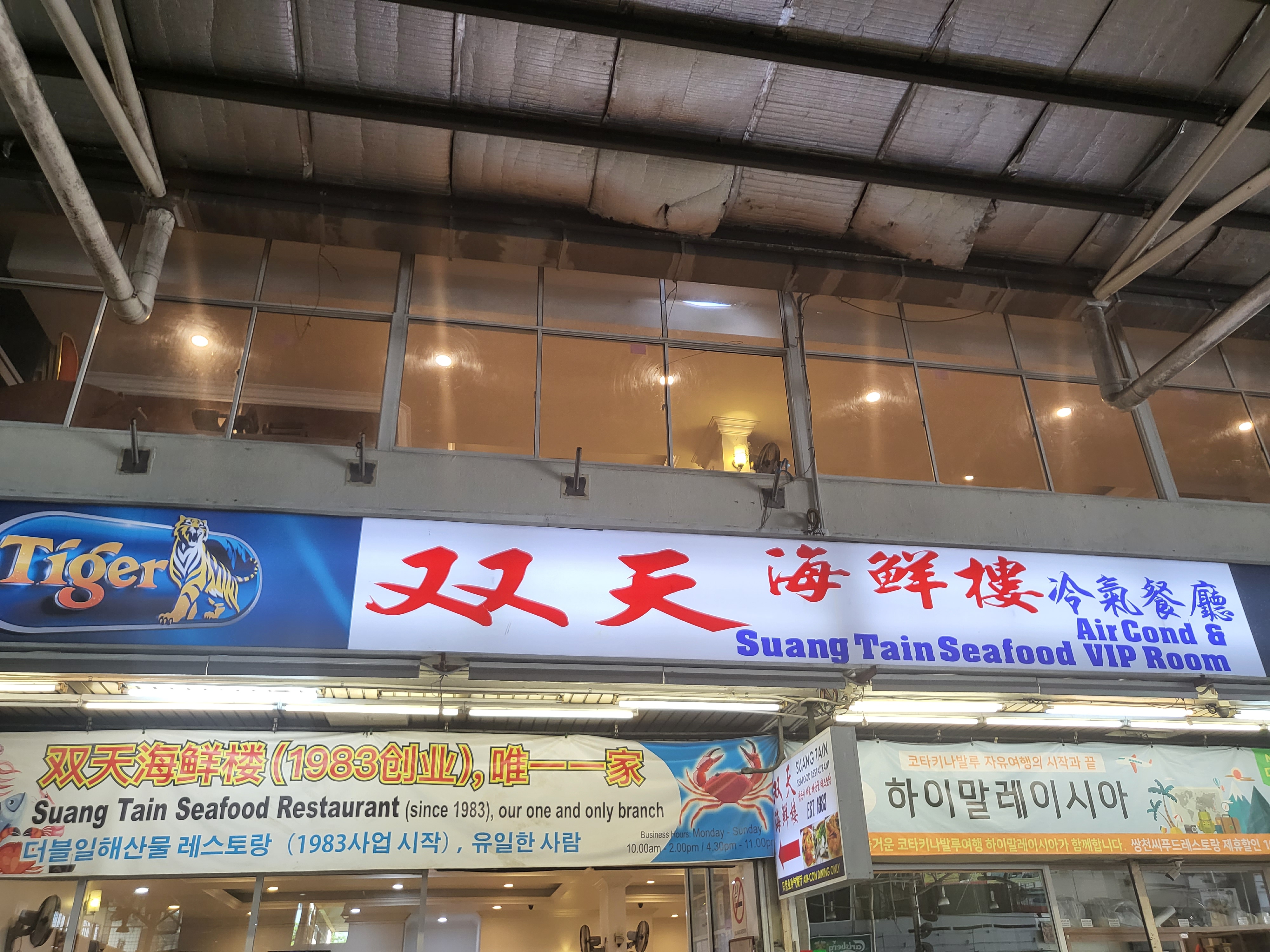 이름부터 강렬한 쌍천 씨푸드.. 알고 보니 중국어로 두 개의 하늘, 씨앙 티엔이었다. 친절하게 한국어로 쌍둥이 하늘이라고 간판에 적혀있다 ㅎㅎ