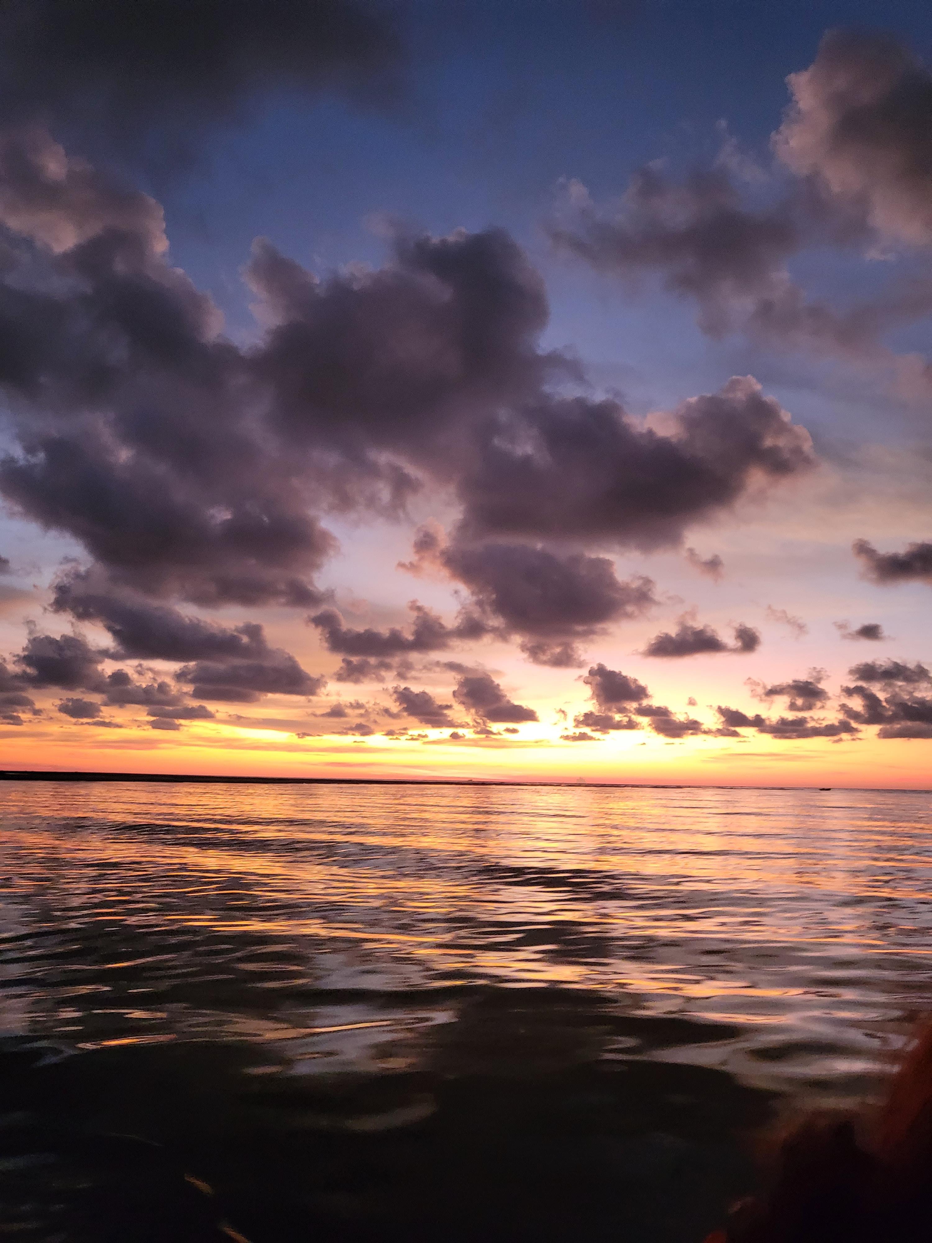그리고 다시 크루즈를 타고 가니 어느덧 해가 저물어서 예쁜 노을을 볼 수 있었다. 참고로 크루즈 밖 쪽 자리에 앉으면 저 똥물이 조금 튄다. 나는 미리 눈치를 까서 친구를 바깥 자리에 앉혔다ㅎ