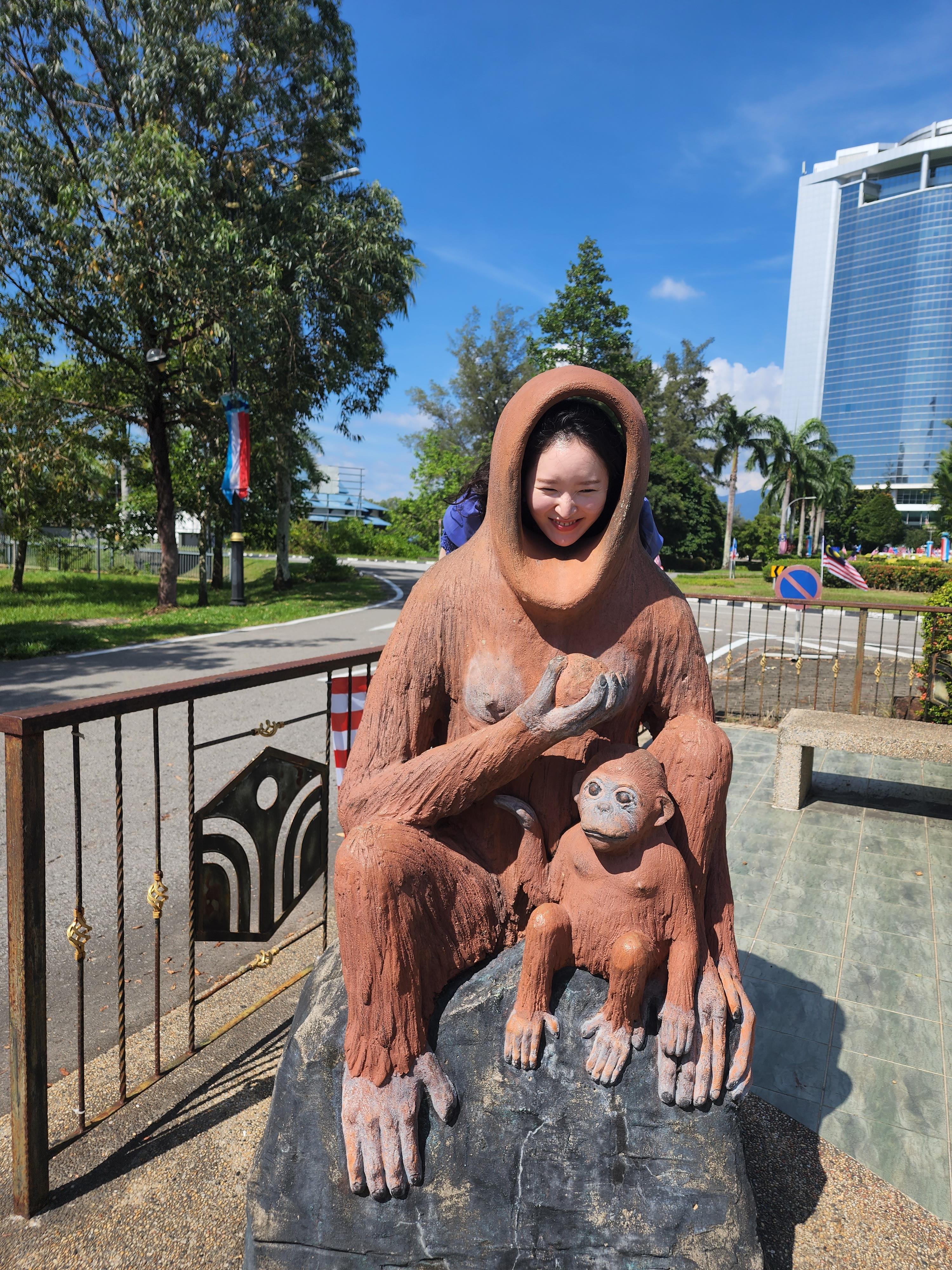 사진 스팟 뒤에 있는 이 오랑우탄 모형이 오히려 더 볼 만했다. 이땐 왜 여기에 오랑우탄이 있지? 싶었는데 나중에 알고 보니 오랑우탄은 코타키나발루가 있는 보르네오 섬에서만 서식한다고 한다!! 오랑우탄이라는 말도 오랑은 사람, 우탄은 숲이라는 말레이시아어였다. 가이드 분은 이런 것도 안 알려주시고 참..;; 어찌 됐건 이 사진을 찍을만한 가치가 있었군!