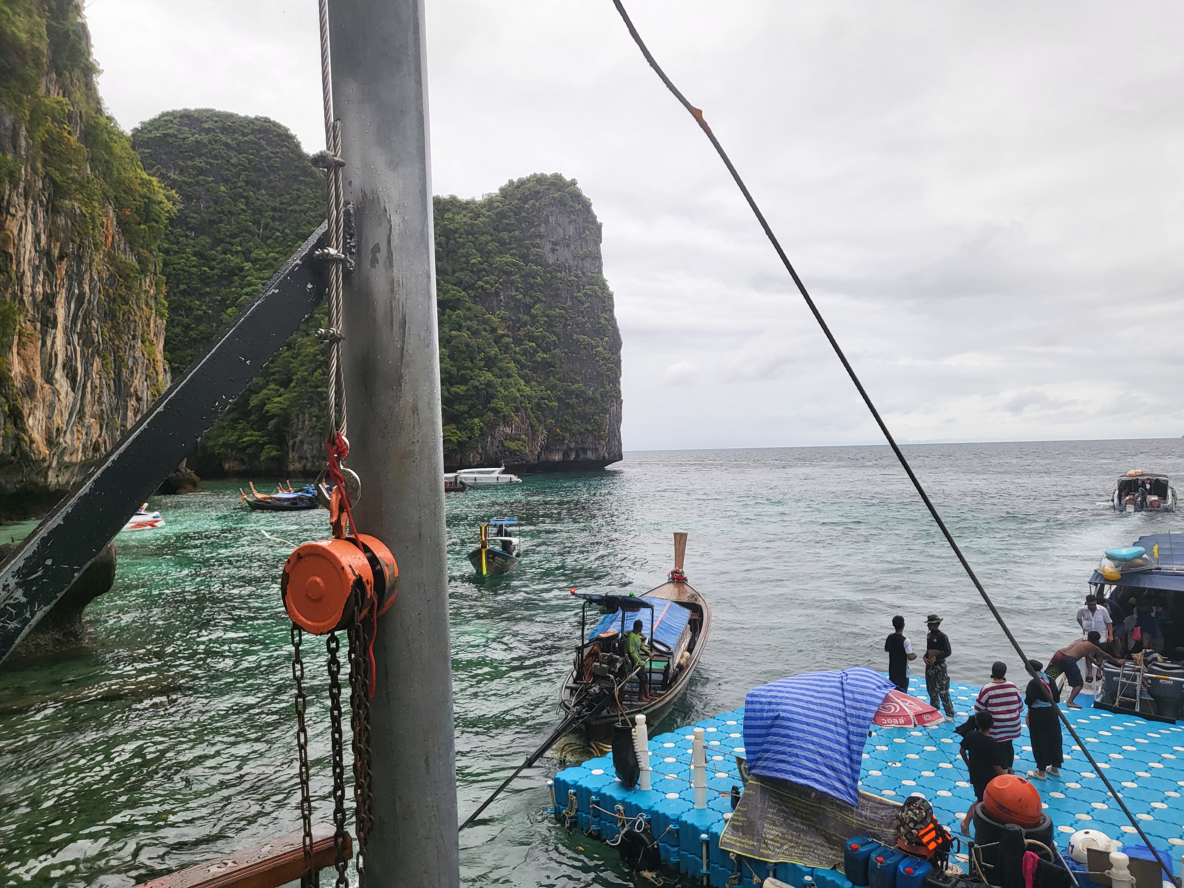 그래서 뒤쪽으로 한참 돌아가 따로 만든 선착장에 보트를 세우고 내려야 한다. 그냥 부표 위로 내리고 타는 거라 보트가 많으면 정말 복잡할 거 같은데 비가 와서 관광객이 별로 없어서 다행 ㅎㅎ 여기서 가이드 분이랑 몇 시까지 돌아올지 정하고 헤어졌다. 여기가 바로 Loh Samah Bay로 싸마 베이이다.