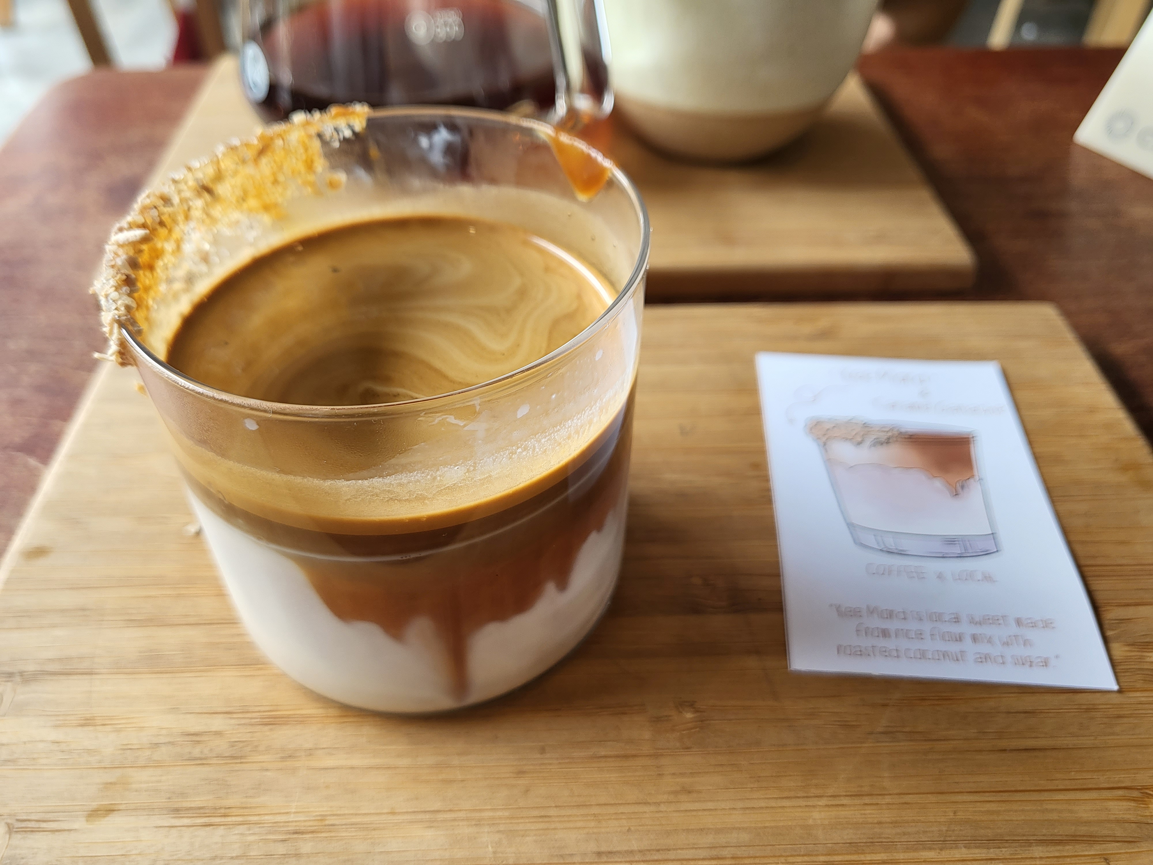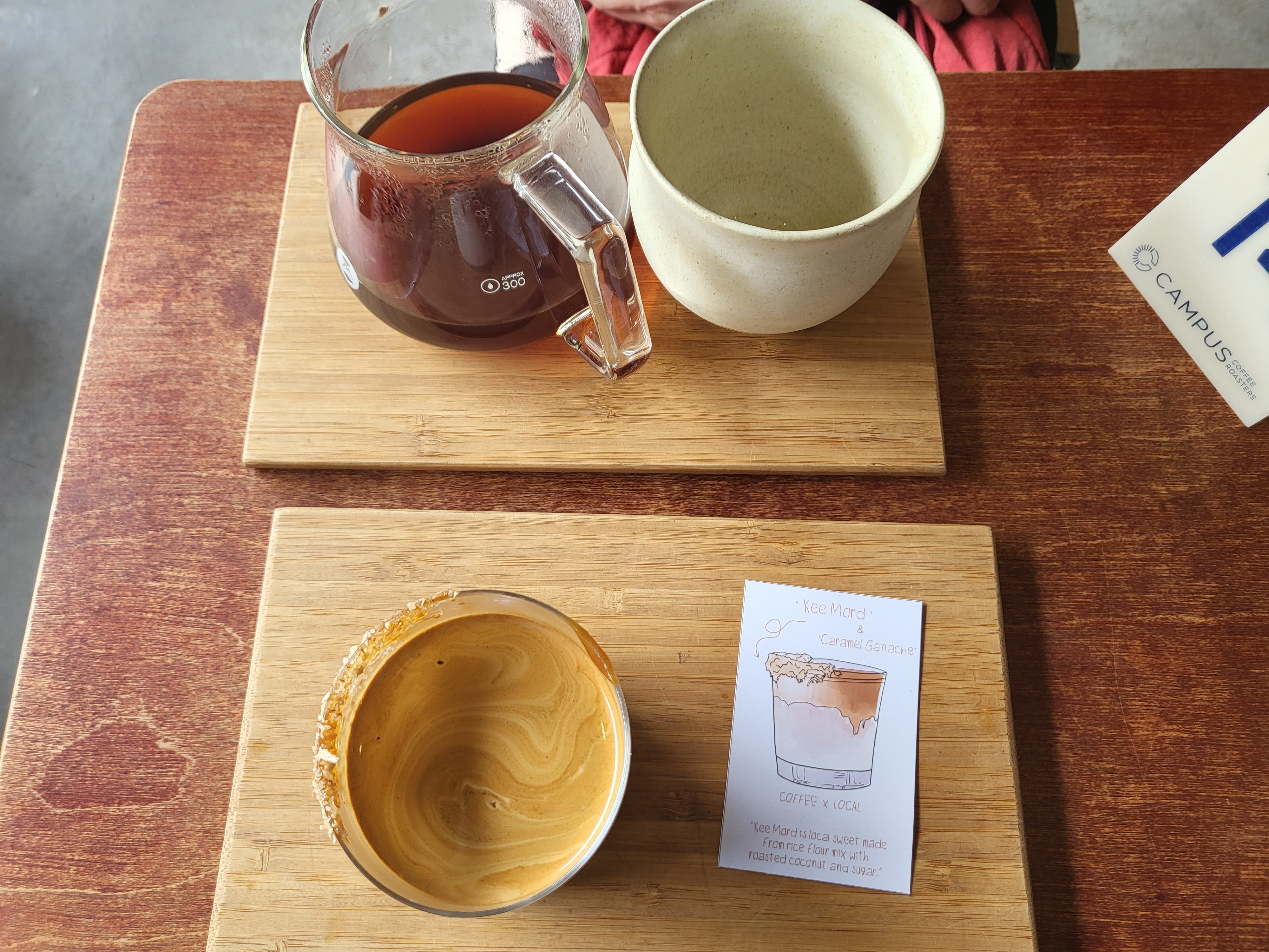 친구는 아마 드립커피였던거 같고 나는 dirty coffee를 시켰다. 역시나 동남아 커피답게 카페인이 꽤 셌음. 맛은 그냥 그랬는데 일단 이쁨... 가격은 각 100바트(약 3,700원)으로 가격도 마음에 들었다.! 암, 이게 동남아 물가지~