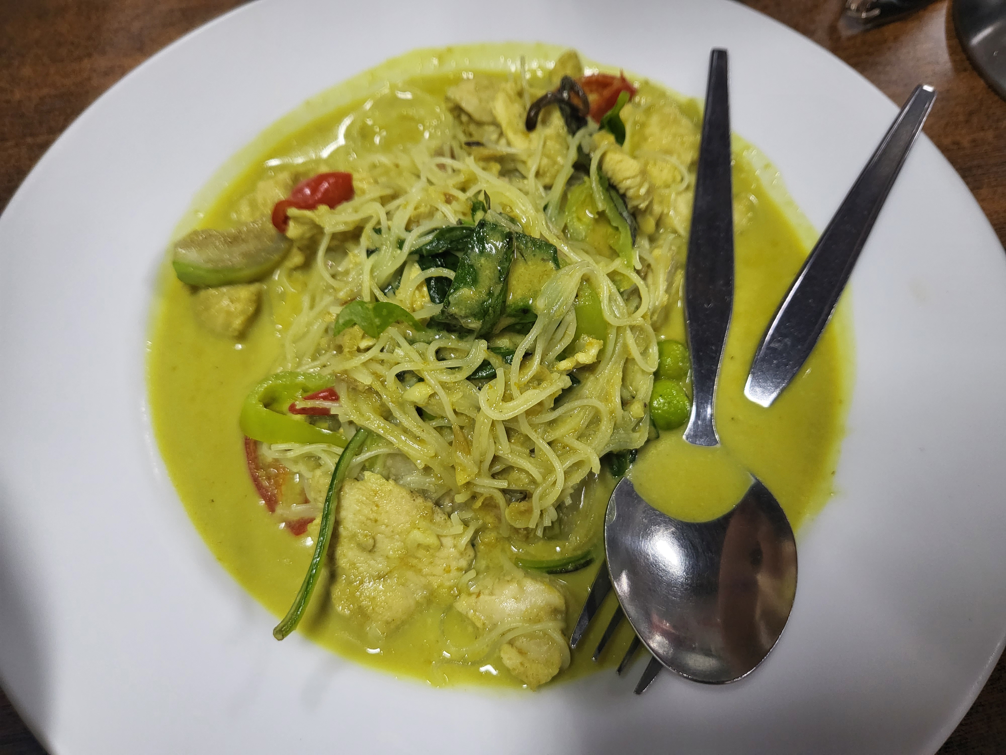 Stir Fry Kway Teow Mee와 Green Curry Noodle을 시켰는데 맛은 있었다. 그린 커리에 면 넣은 건 첨 봐서 신기했음. 사진에도 고추가 많이 보이듯이 엄청 매워서 나는 못 먹을 정도였다. 현지음식이라고 느낀 게 양이 매우 적다..^^ 건장한 한국인이 먹기엔 작았음.