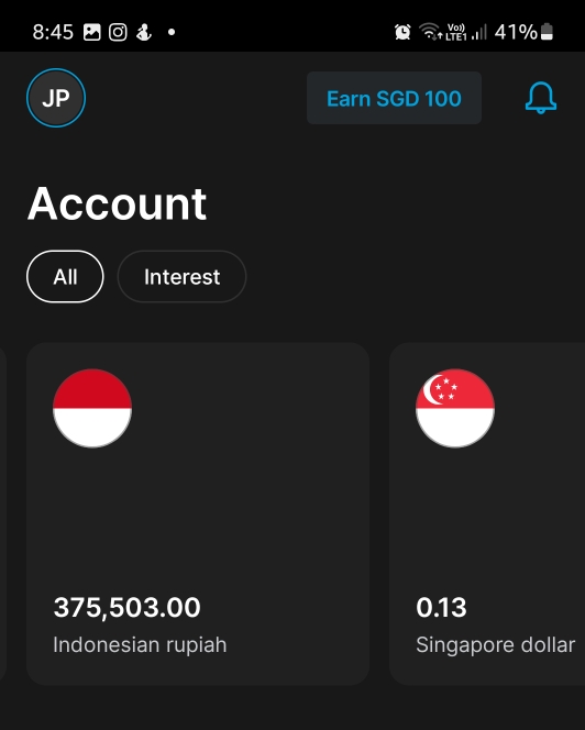 충전한 싱가포르 통화를 다른 국가 통화로 환전해 보관할 수 있다. 마치 한국 신한은행 SOL 쏠 환전에 모바일 금고처럼 저렴한 통화를 사놨다가 나중에 비싸질 때 팔면 환테크를 할 수 있다!