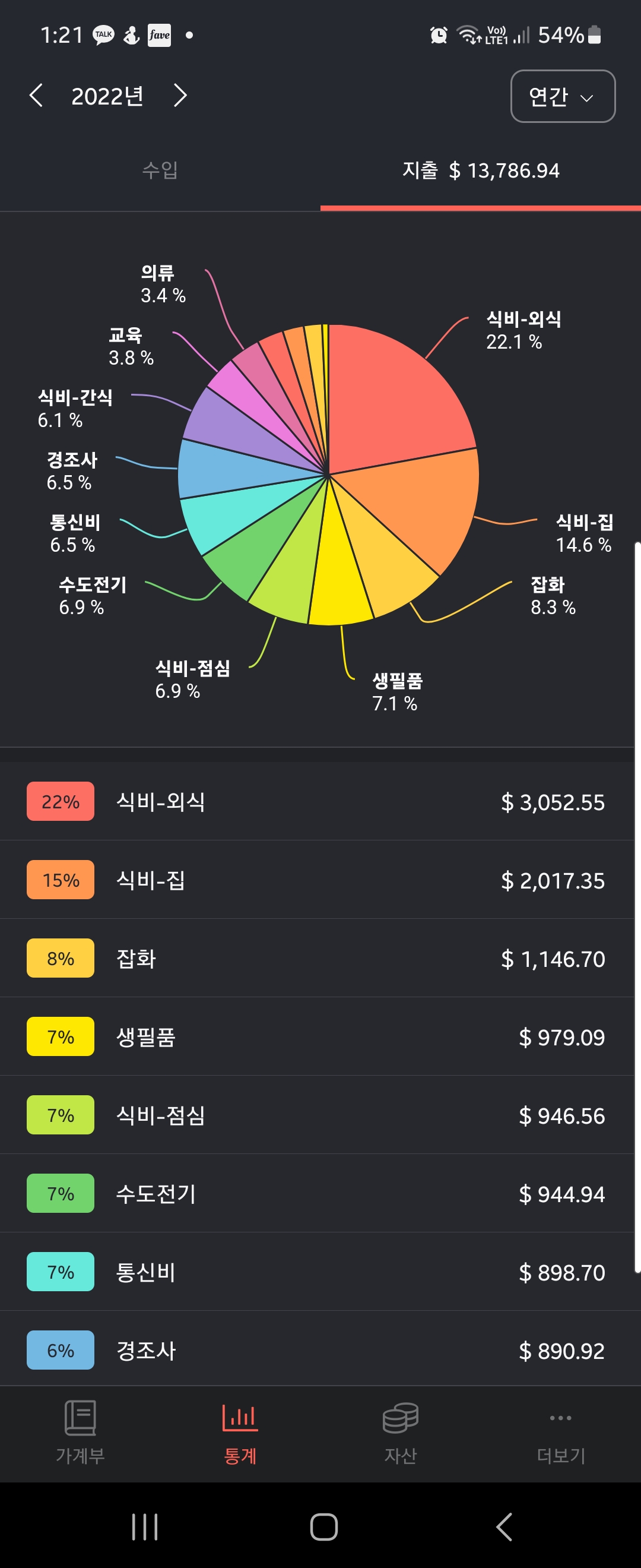 올해도 가계부는 계속 적었다. 싱가포르는 물가가 많이 올랐는데 월세마저도 올라서 먹고살기 힘든 한 해였다. 내년엔 gst도 올라서 외식도 줄여야 할 판...^^;;