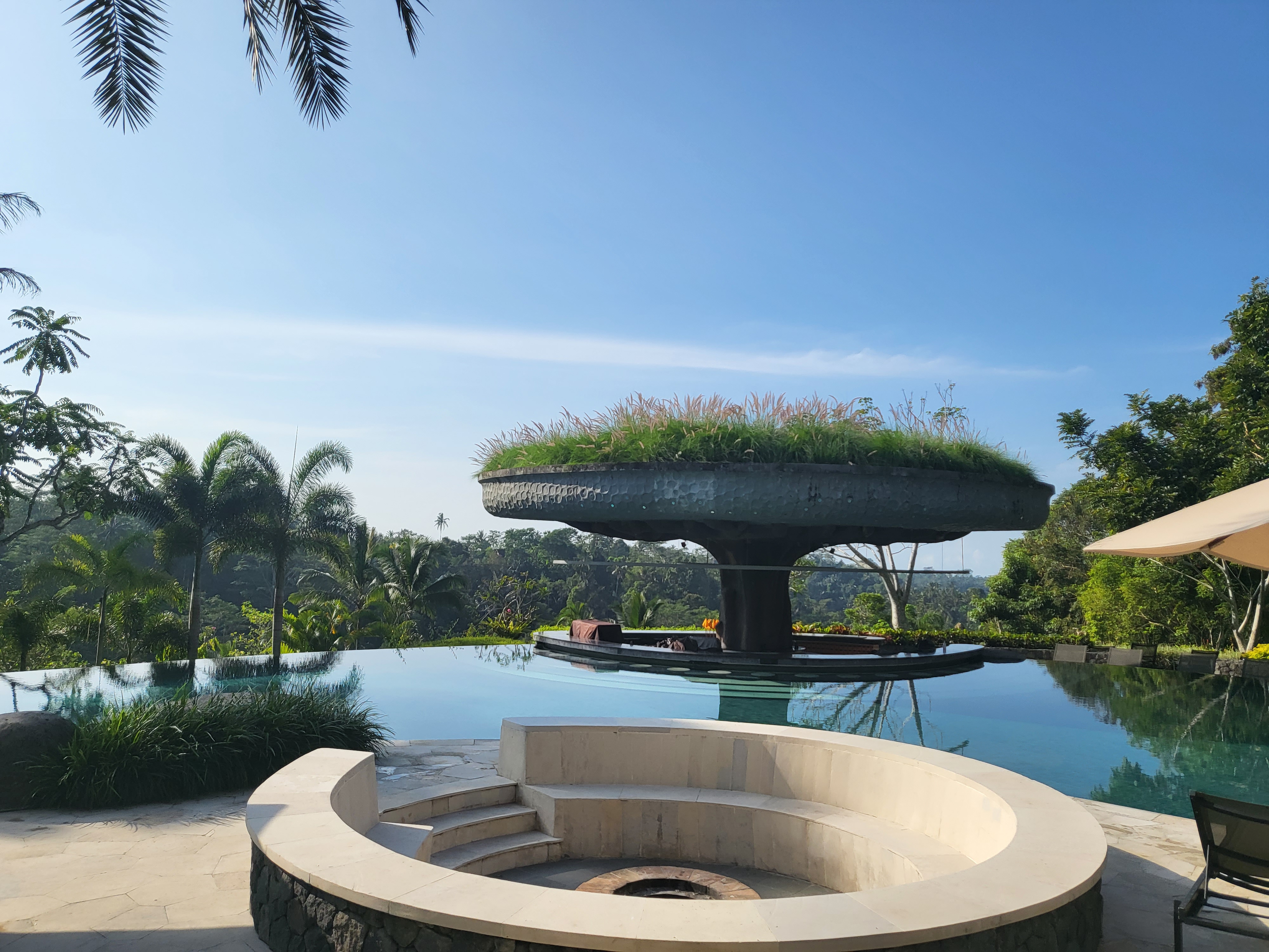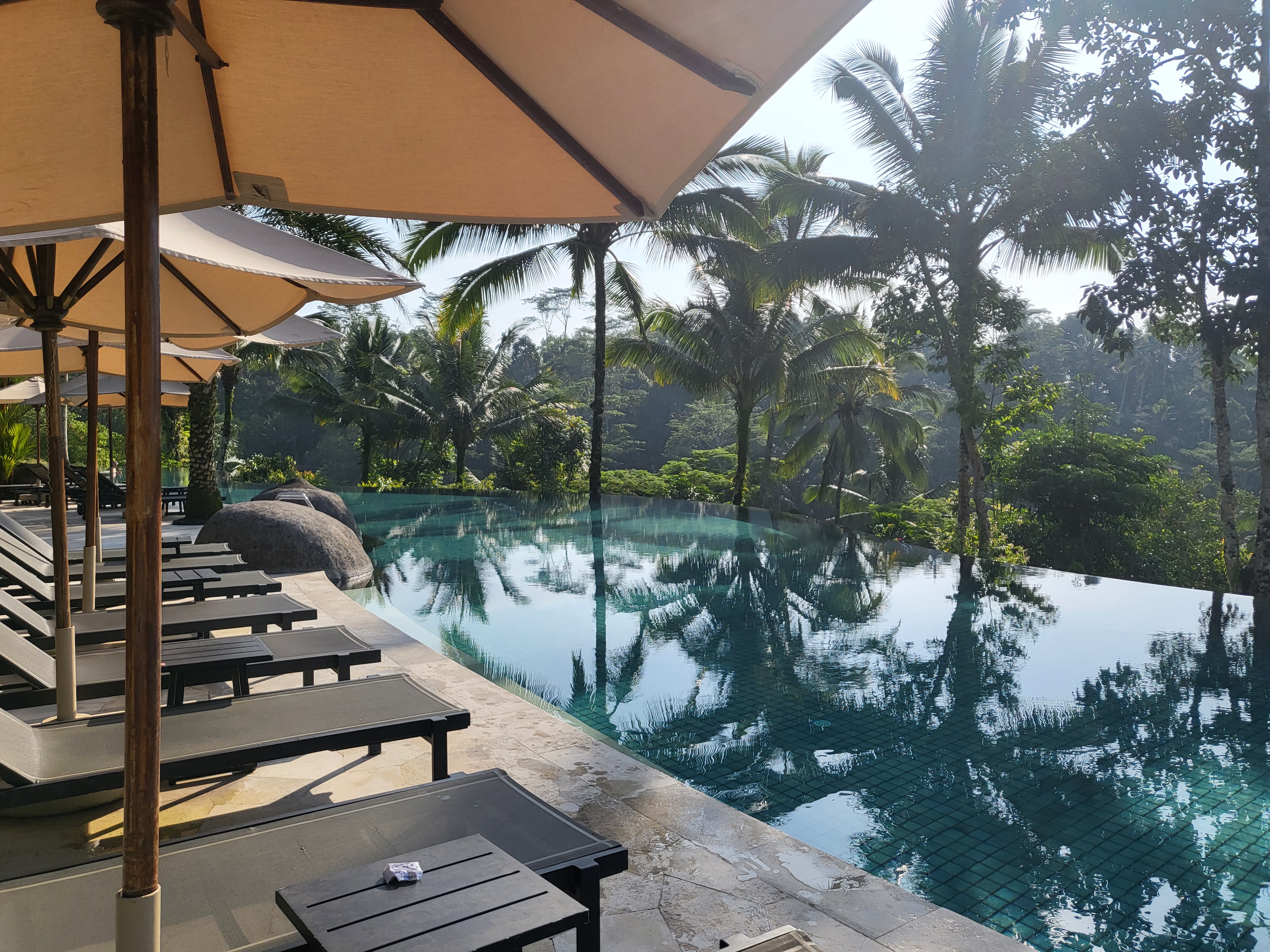 정글 뷰도 좋고 아직은 사람들이 많이 없어서인지 썬베드도 여유로웠다. 그리고 풀 안에 바가 있어서 물속에 앉아서 칵테일도 마실 수 있었다.