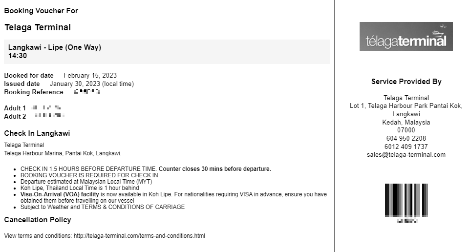 먼저 텔라가 터미널 -> 꼬리페는 아래 사이트에서 예약했고 가격은 158 MYR (약 46,000원) 정도였다. 엄연한 타 국가로 입출국하는 곳이기 때문에 최소 1시간 30분 전에 터미널에 도착하라고 한다.