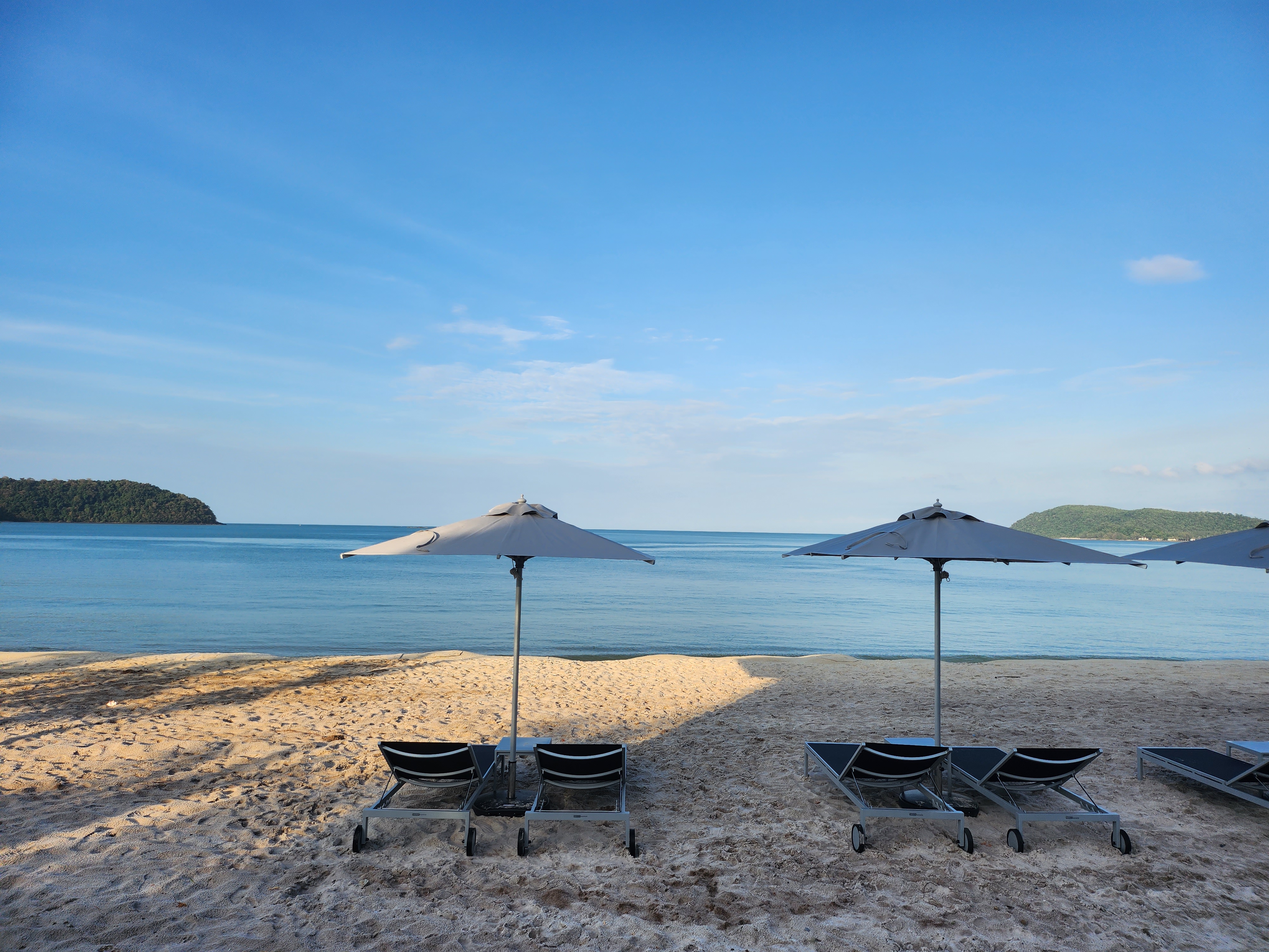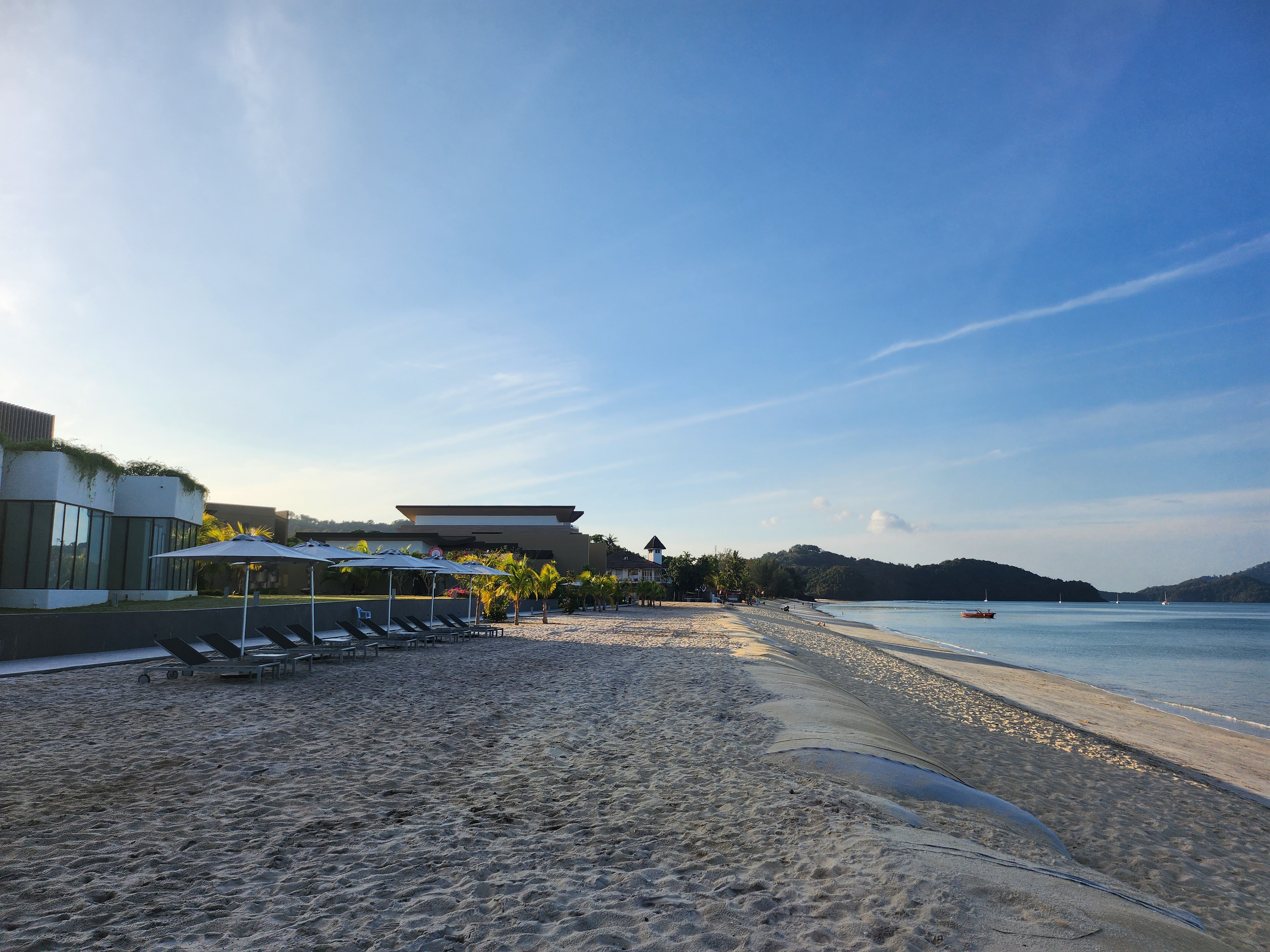 그리고 호텔 바로 앞에 있는 텡가 비치 Tengah Beach도 직접 가봤다. 모래사장이 넓고 호텔 선베드가 있어서 쉬기에 좋아 보였다. 그리고 일단 한적함.. 체낭 비치는 해안가를 따라서 카페랑 식당들이 쭉 있어서 사람들이 많을 텐데 파크로얄 리조트 앞은 사람이 정말 없었다.