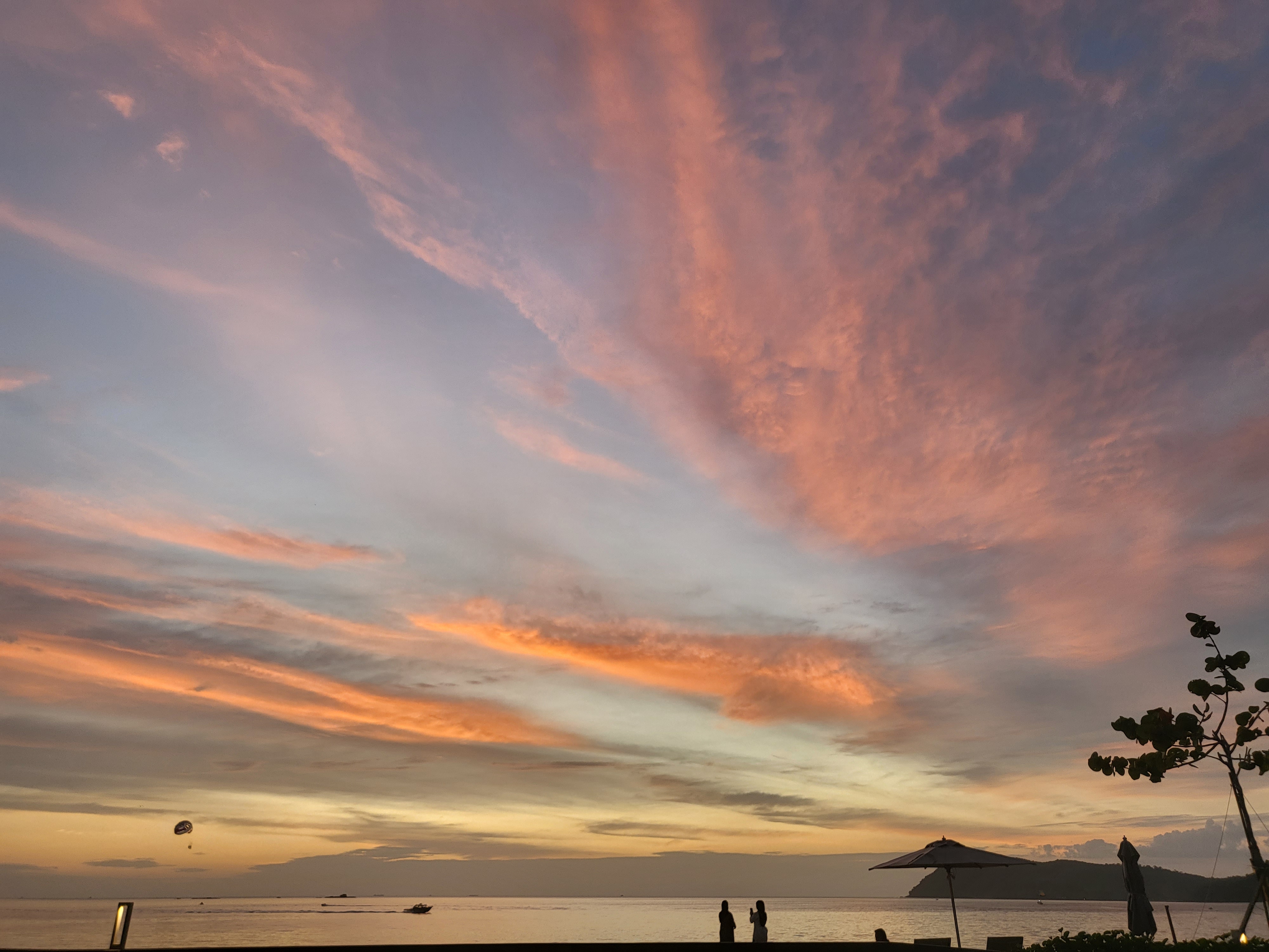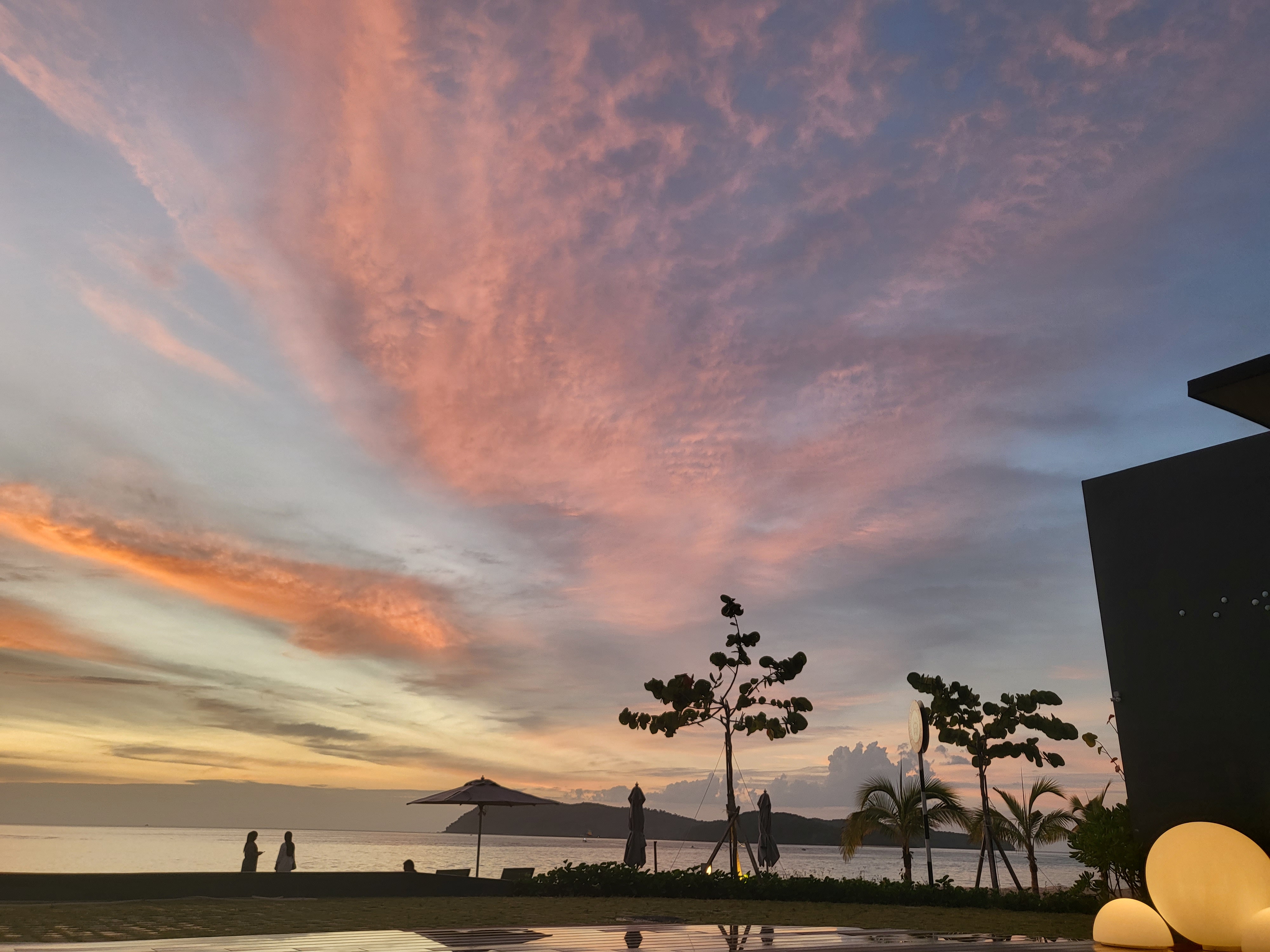 수영장 바로 앞이 비치라서 노을을 봤는데 하늘이 핑크색. 핑크 하늘.. 여기서도 보이는구나..