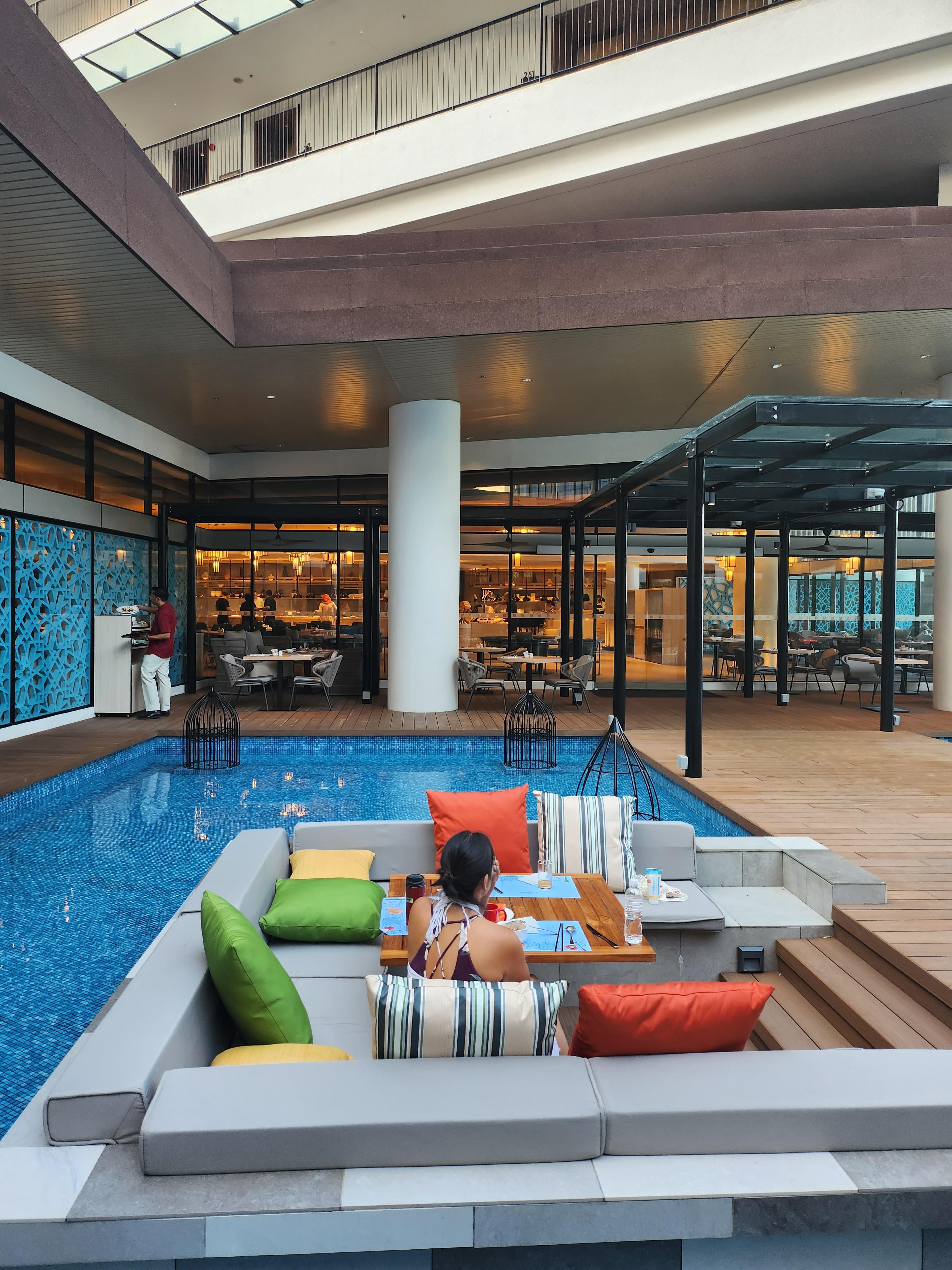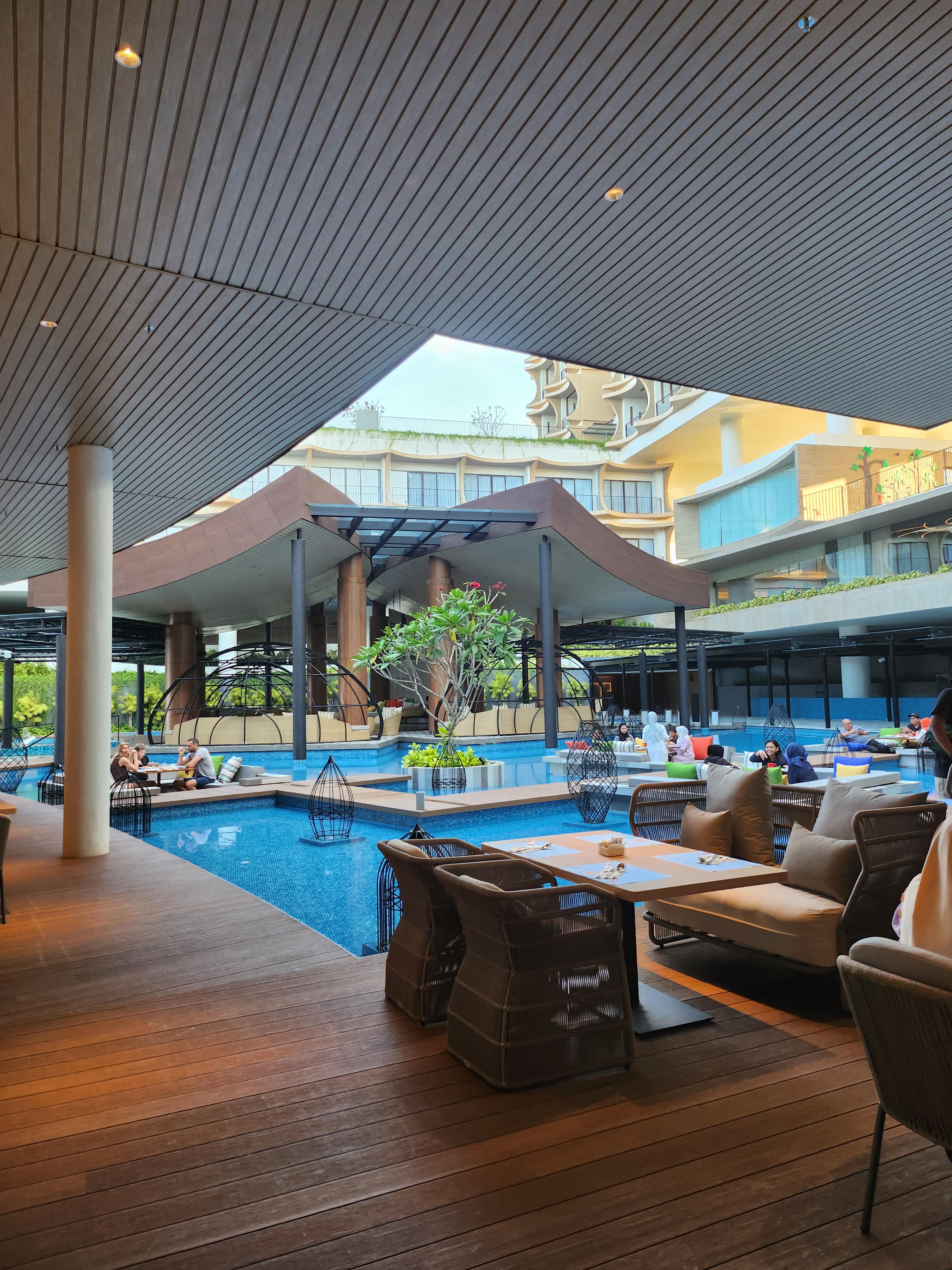 수영장은 총 두 곳이있었다. 먼저 로비와 연결된 메인 수영장! 크기도 컸고 키즈 놀이터도 있고 풀 바도 있었다.