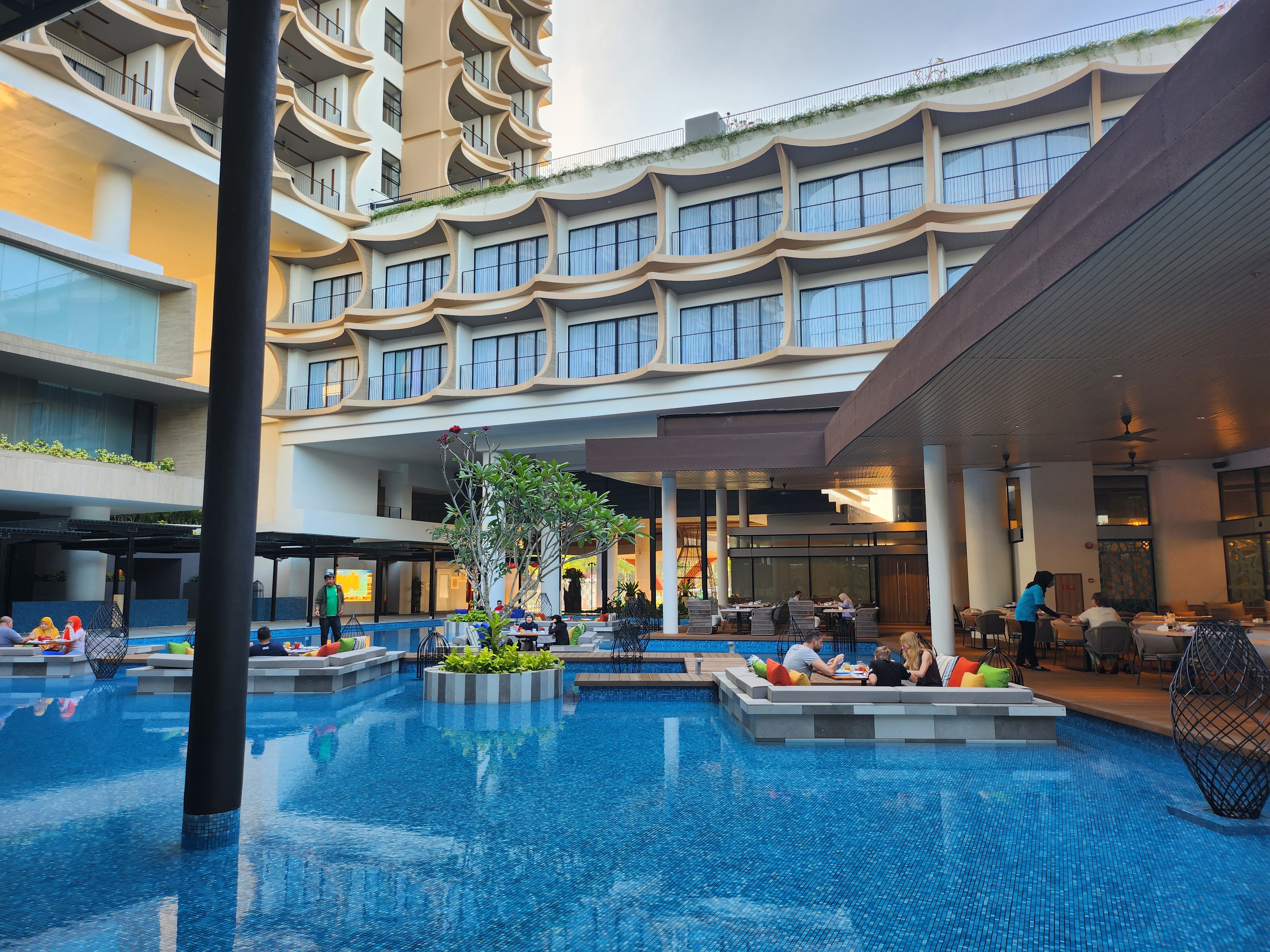 호텔 체크인은 14시였는데 우린 16시쯤에 호텔에 도착했다. 랑카위 더위에 완전 지친 상태라 얼른 수영복으로 갈아입고 수영장에 들어가고 싶었는데 방이 준비가 안돼서 로비에서 오래 기다려야 했다. 체크인 시간보다 2시간이나 늦게 왔는데도 방이 준비가 안되어있다니.. 30분 정도를 기다리다가 짜증도 나고 힘들어서 직원한테 호텔 식당에 가서 밥 먹고 있겠다고 했다.