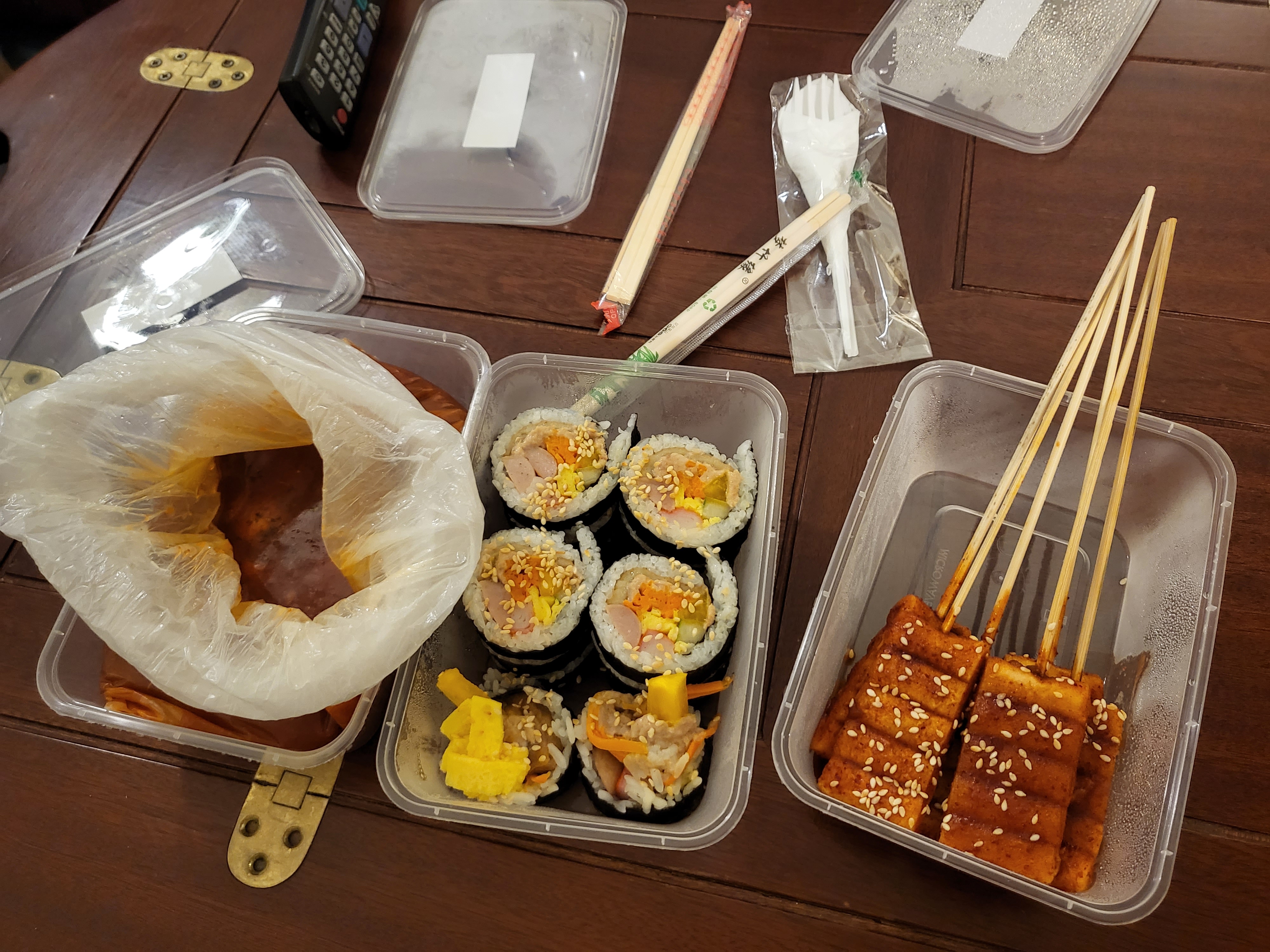 치즈 떡볶이랑 참치김밥, 떡꼬치를 시켰다. 모두 넘나 맛있었음...