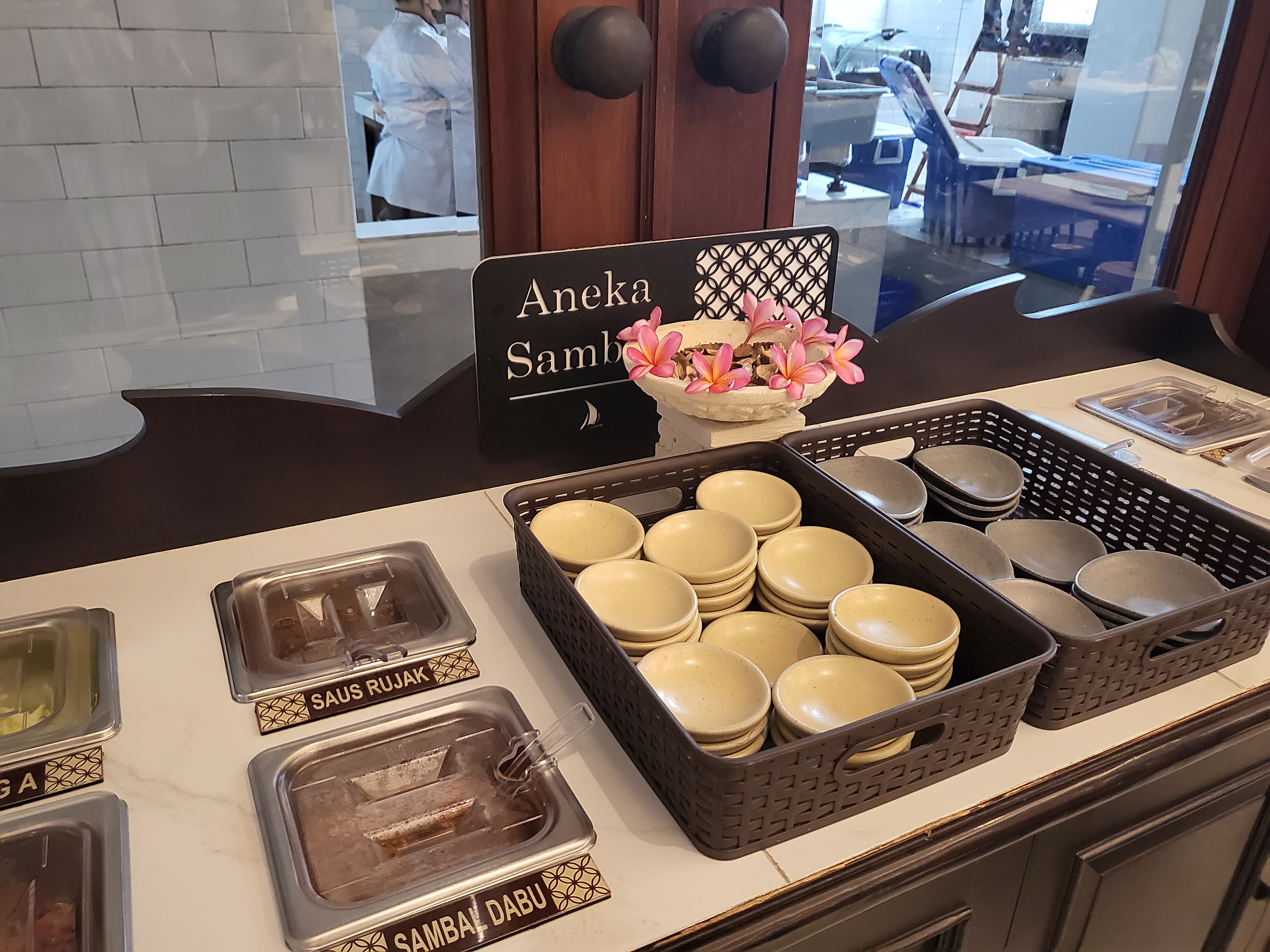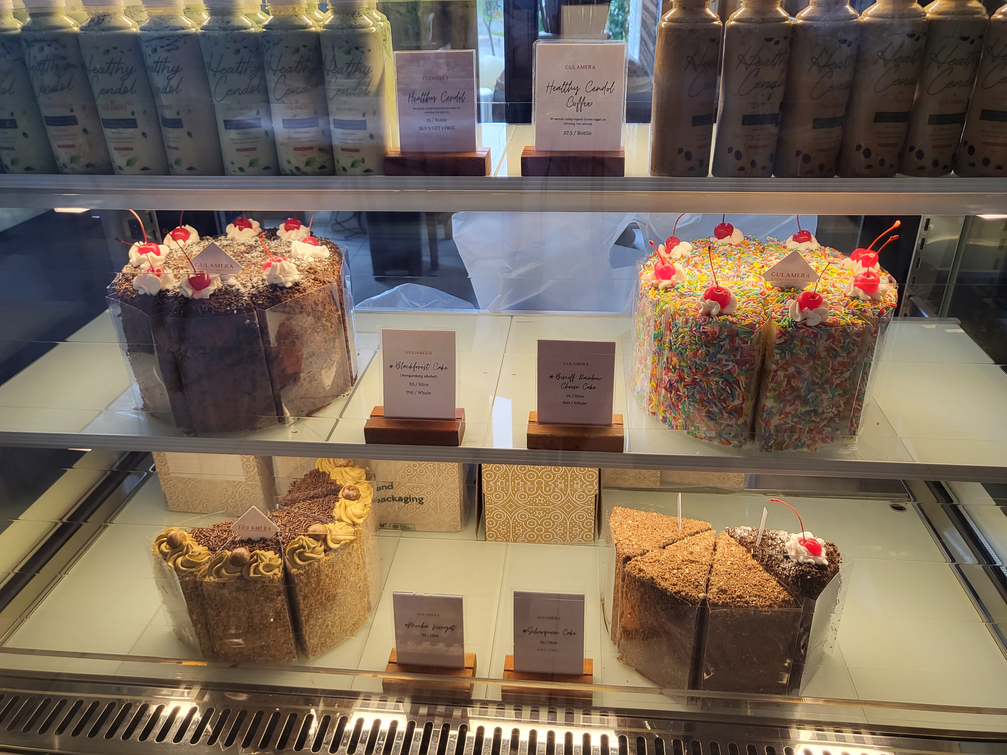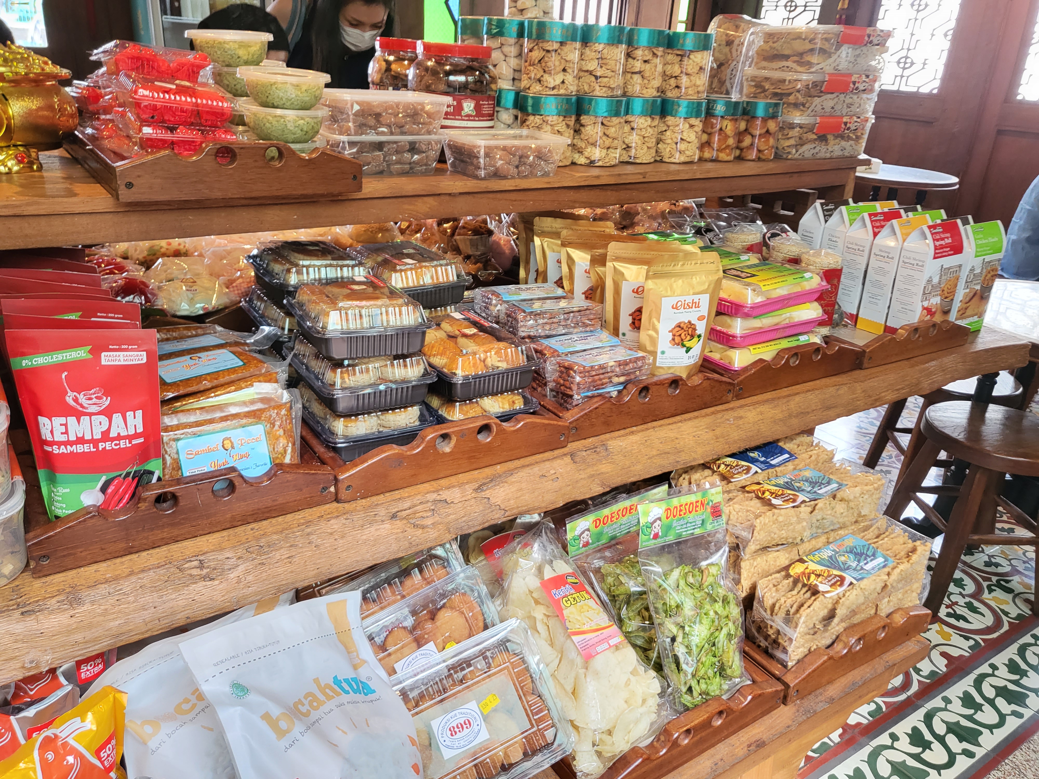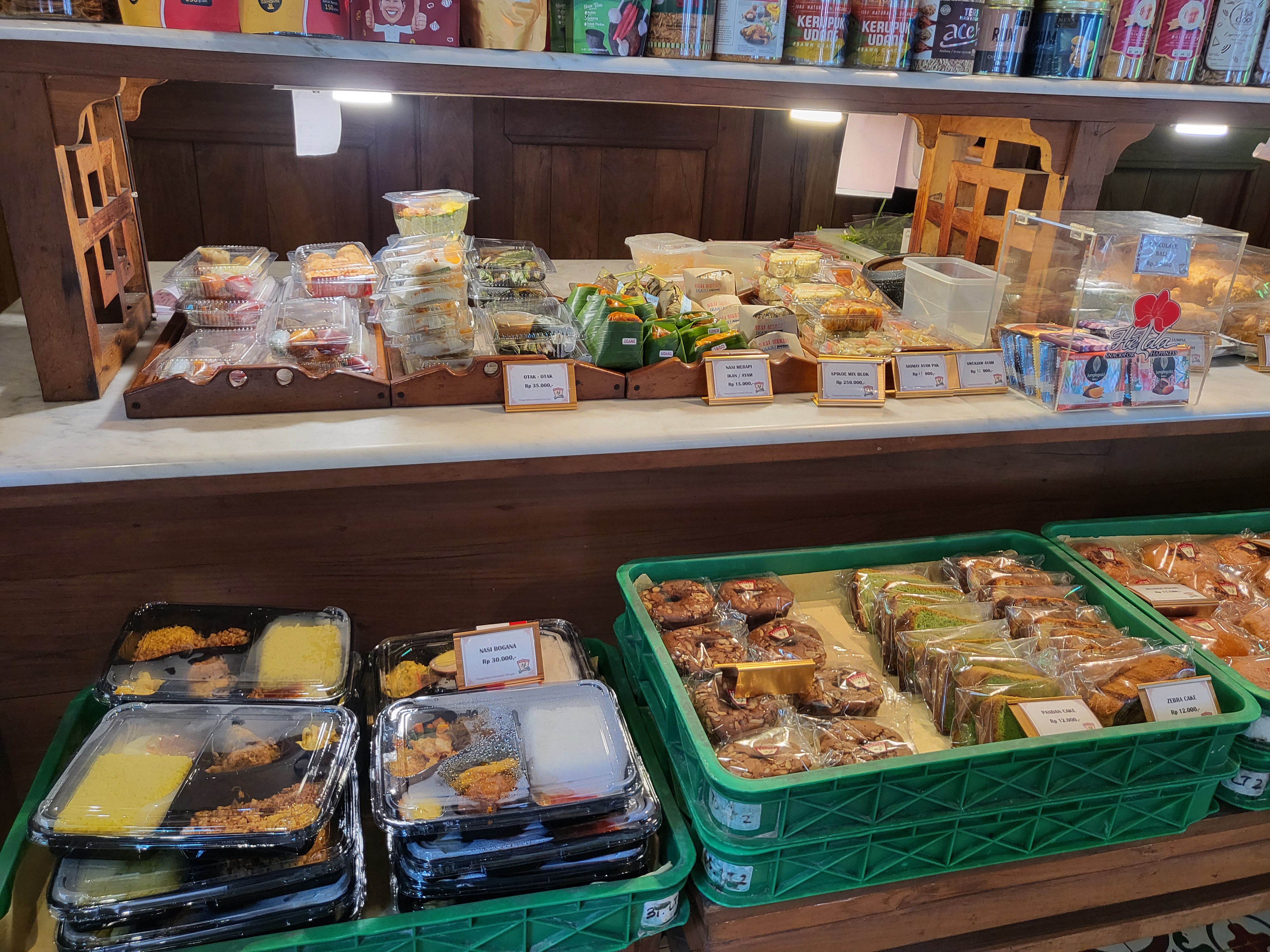 가게로 들어오면 이렇게 빵과 전통 간식을 파는 곳이 있고 그 안으로 들어오면 식당 테이블이 있다. 여기서 인도네시아 전통 간식 꾸에 Kueh를 많이 사가더라. 마트 과자 털 생각에 빵은 안 사봤는데 아숩 ㅠㅠ