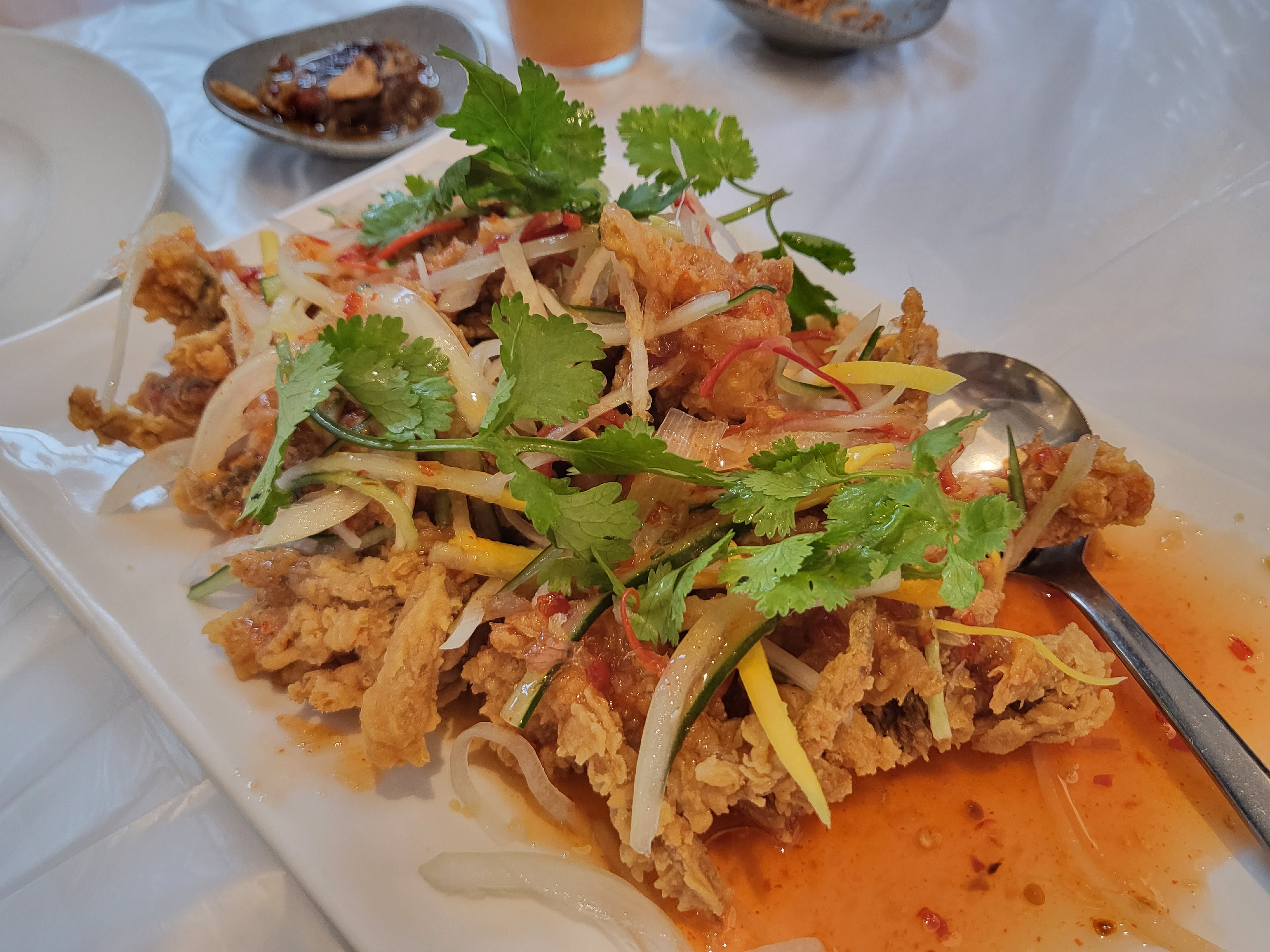네이버에서 이거 추천을 많이 해서 먹었는데 너무 달다.. 소프트쉘 게 튀김인데 다른 맛으로 먹었으면 더 맛있었을 거 같다. 타이 맛이라는데 그냥 일반적인 스윗칠리맛이었다.