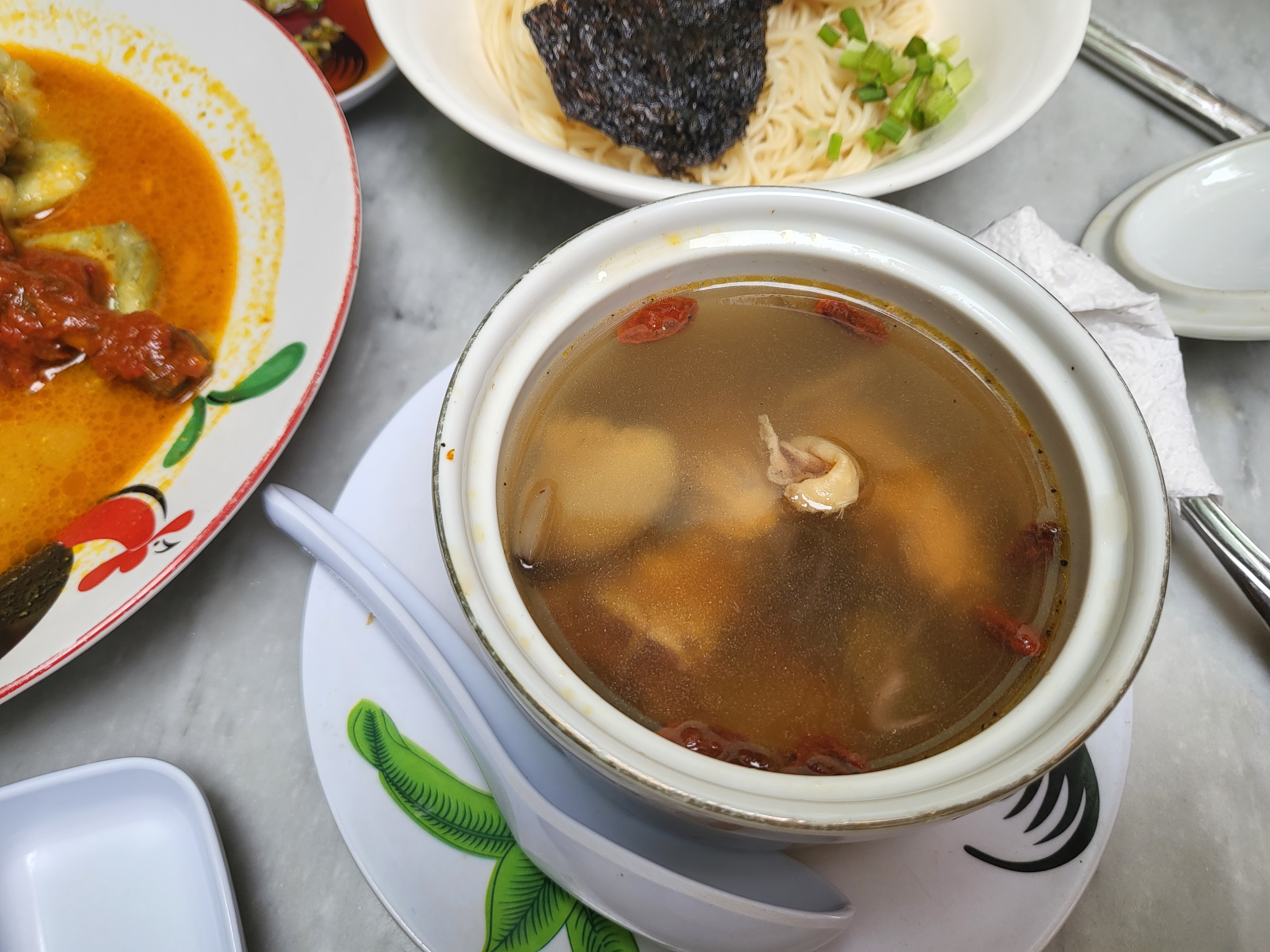 진짜 최악.. 난 두리안도 좋아하는데 죽순은 정말 극혐 한다. 근데 저 음식에 죽순이 들어가 있어서 휘저을 때마다 냄새나서 곤욕이었다. 밥 먹으려고 저 음식 쪽으로 고개 숙일 때 죽순향이 훅 들어오면 입맛 떨어질 정도.. 커리 같은 느낌인데 밥도 안 주고 면도 없어서 배가 찰지도 의문 ㅠㅠ 정말 별로였습니다.