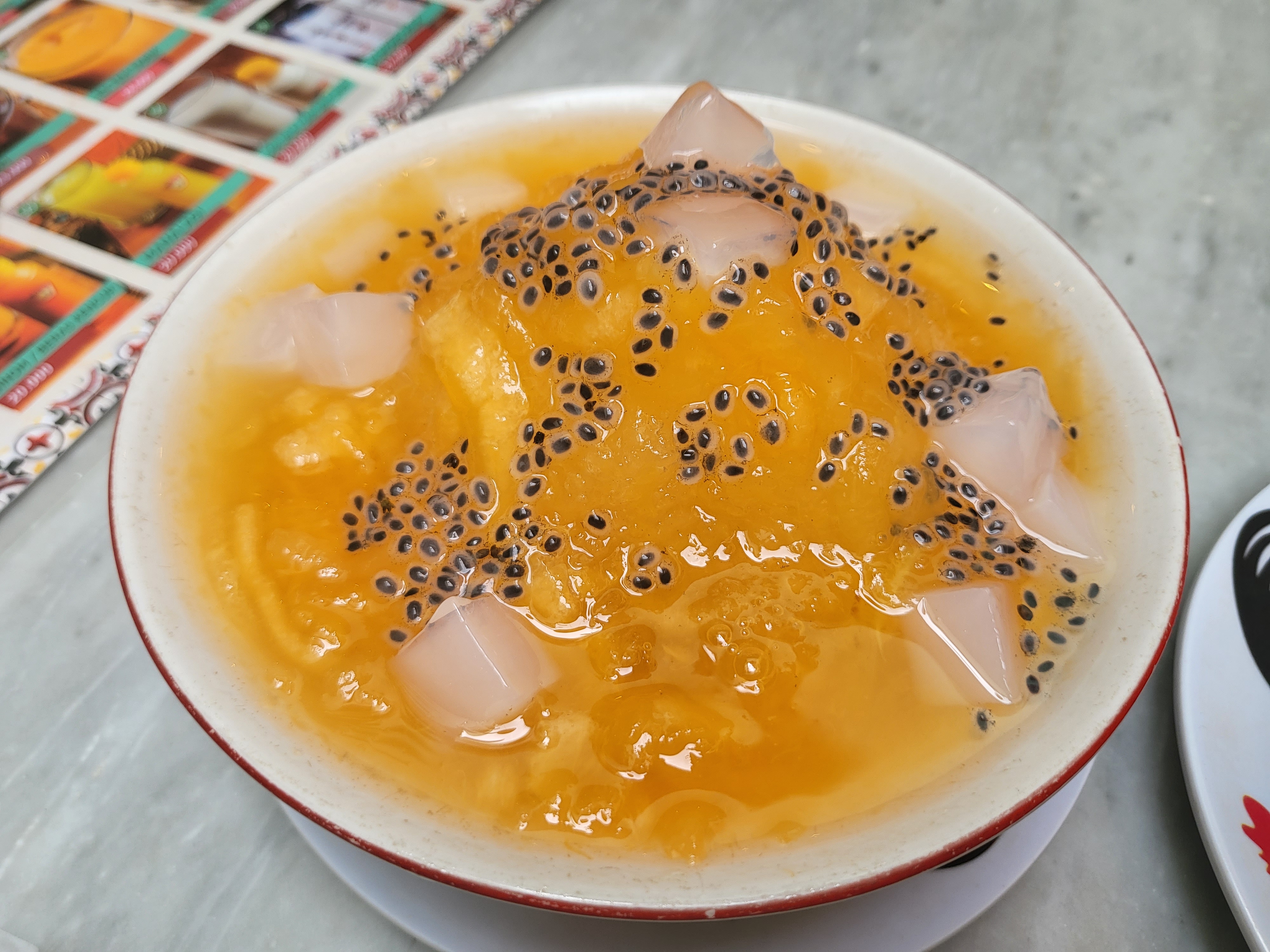 멜론 사고 sago였다. 주변을 보니 다 1인 1그릇(심지어 애기도) 하길래 시켜봤다. 예상가는 중국식 디저트 맛으로 엄청 달지 않은 밍밍한 과일 젤리 맛이었다. 특별하진 않았음..