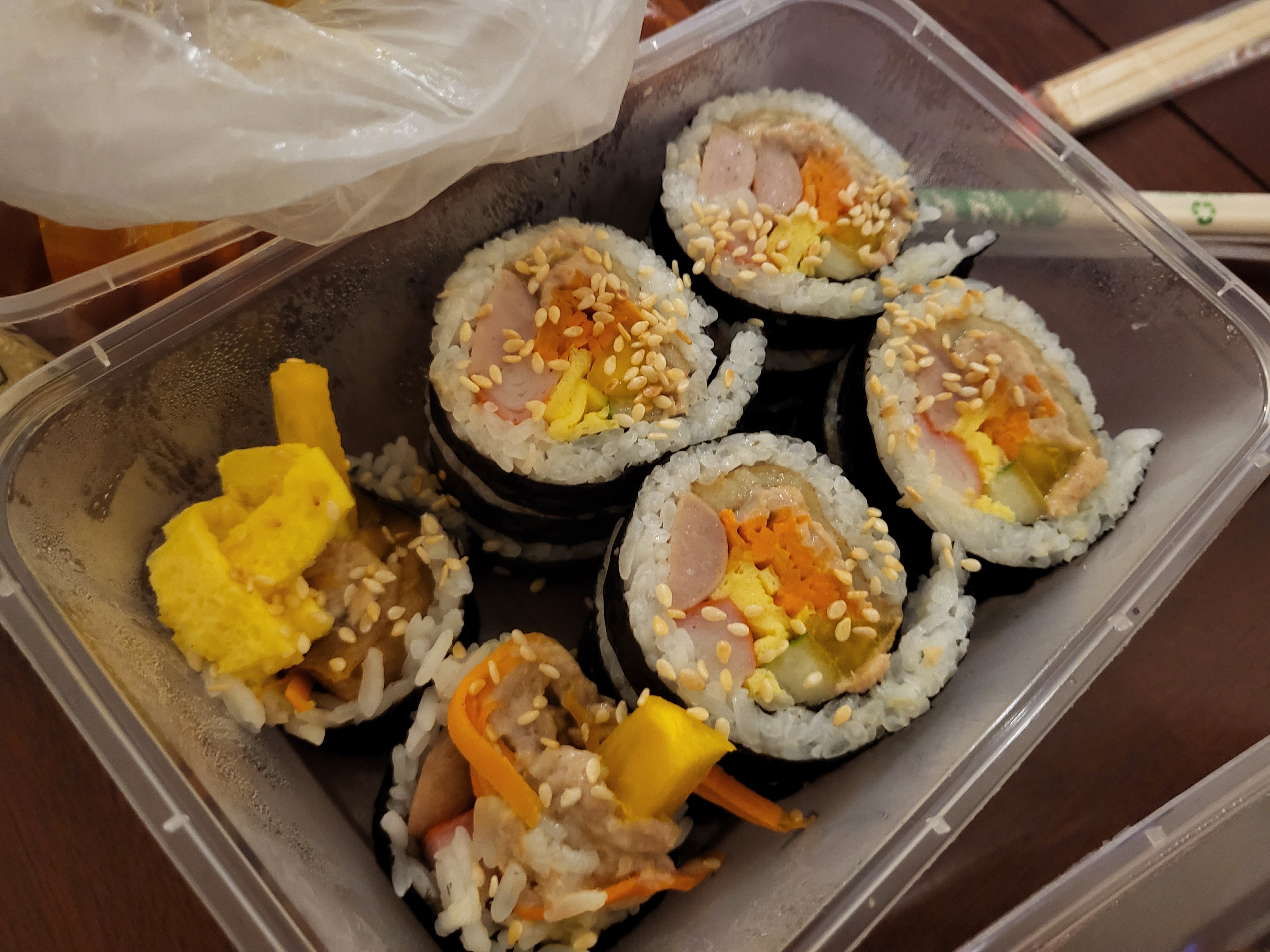 떡볶이가 내가 생각한 달달 떡볶이가 아니라 육수를 깊게 낸 집 떡볶이 맛이라 좀 놀랬다. 그리고 참치김밥 안에 햄이 돼지고기 햄이 아니라 닭고기 햄 맛이 났다. 그래도 맛있었음..