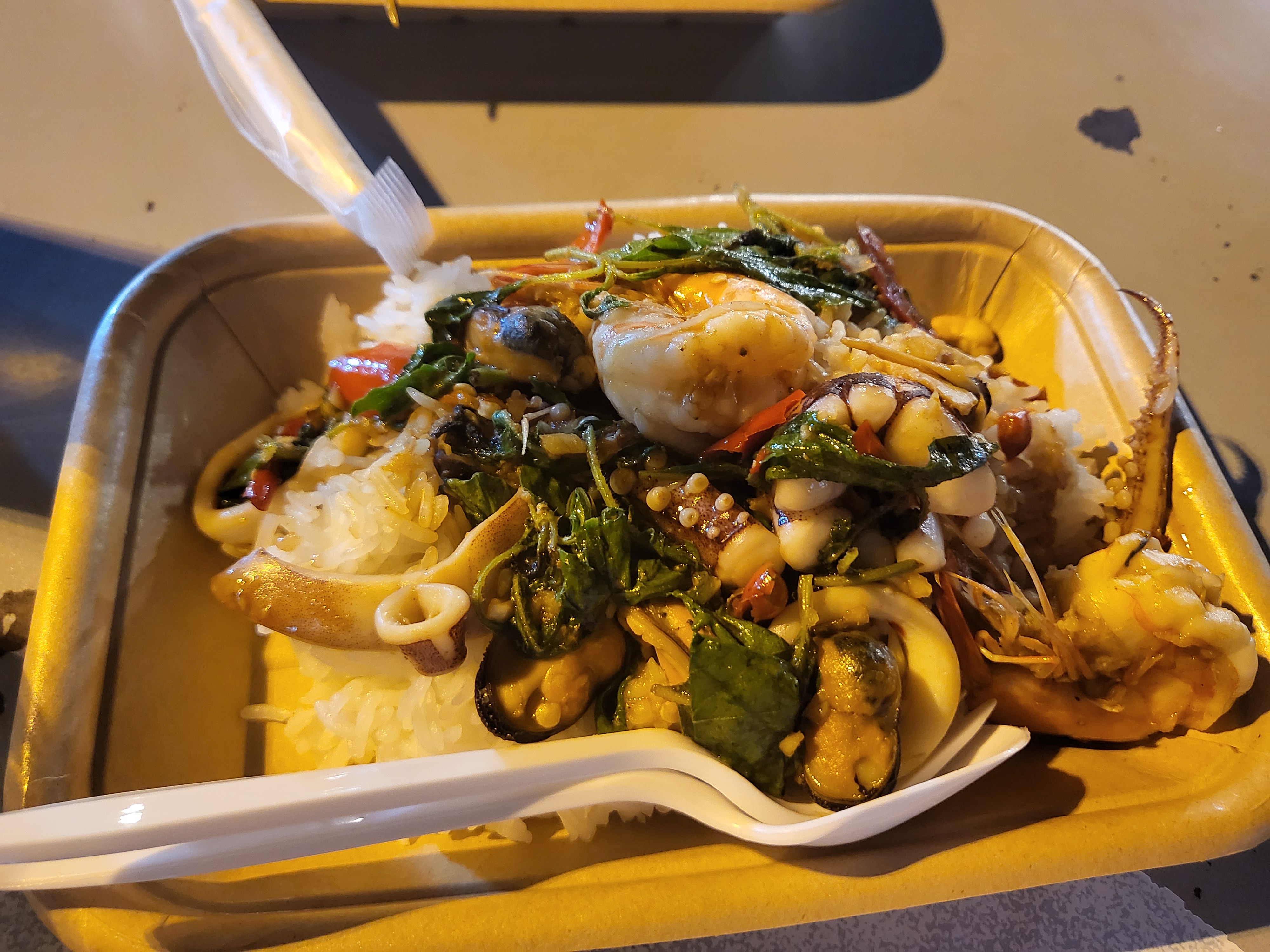 치앙마이는 내륙이다 보니 해산물을 많이 안 팔 줄 알았는데 해산물이 들어간 음식이 많았다. 그리고 매우 신선해 보였음! 이렇게 총 160바트(약 6,300원)이었다. 야외 식당이 가격이 확실히 저렴하다.