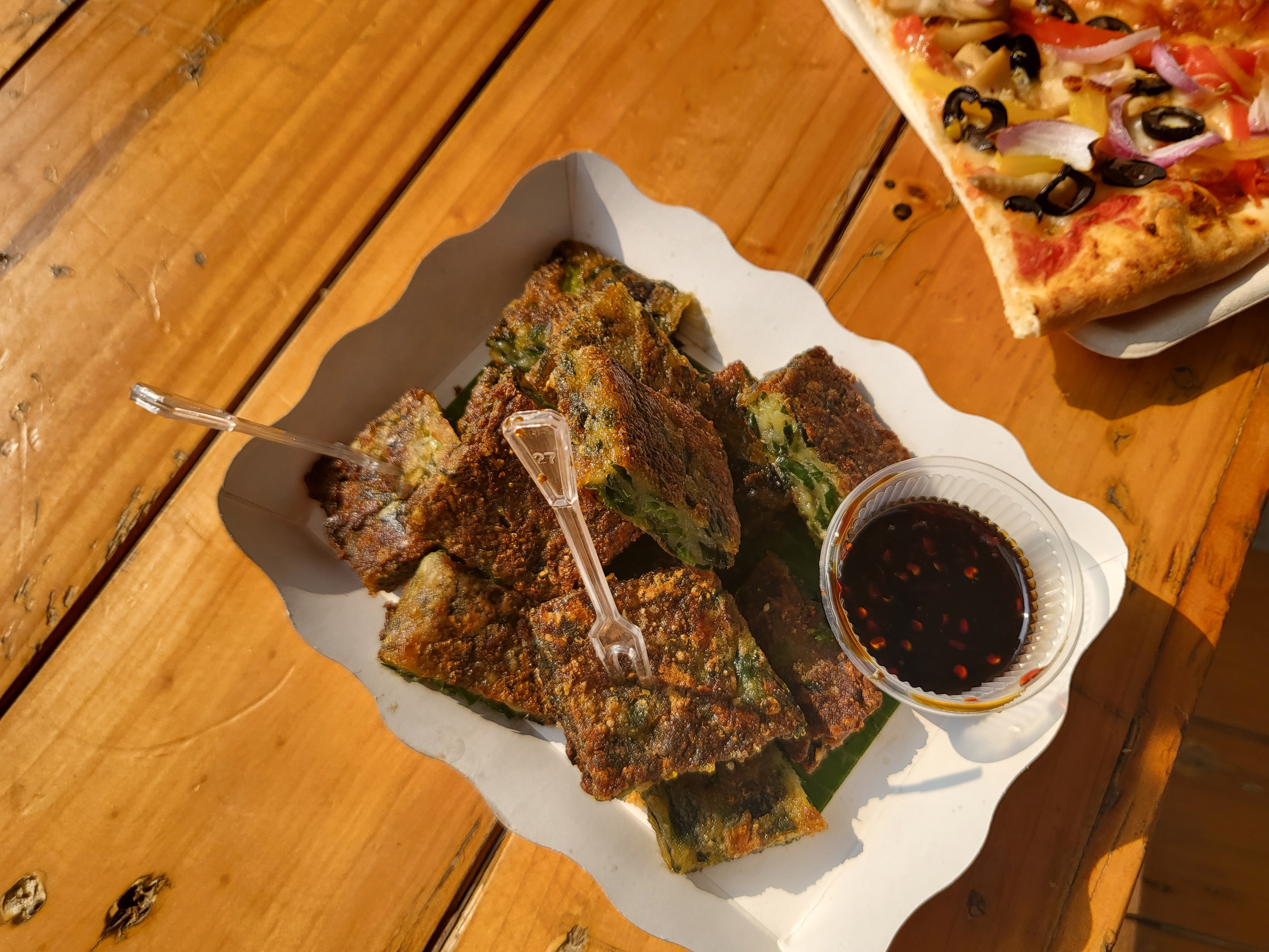 그리고 신기하게 부추전을 팔길래 먹어봤다. 두툼하고 소스가 간장이 아닌 게 좀 달랐지만... 맛은 있었음!