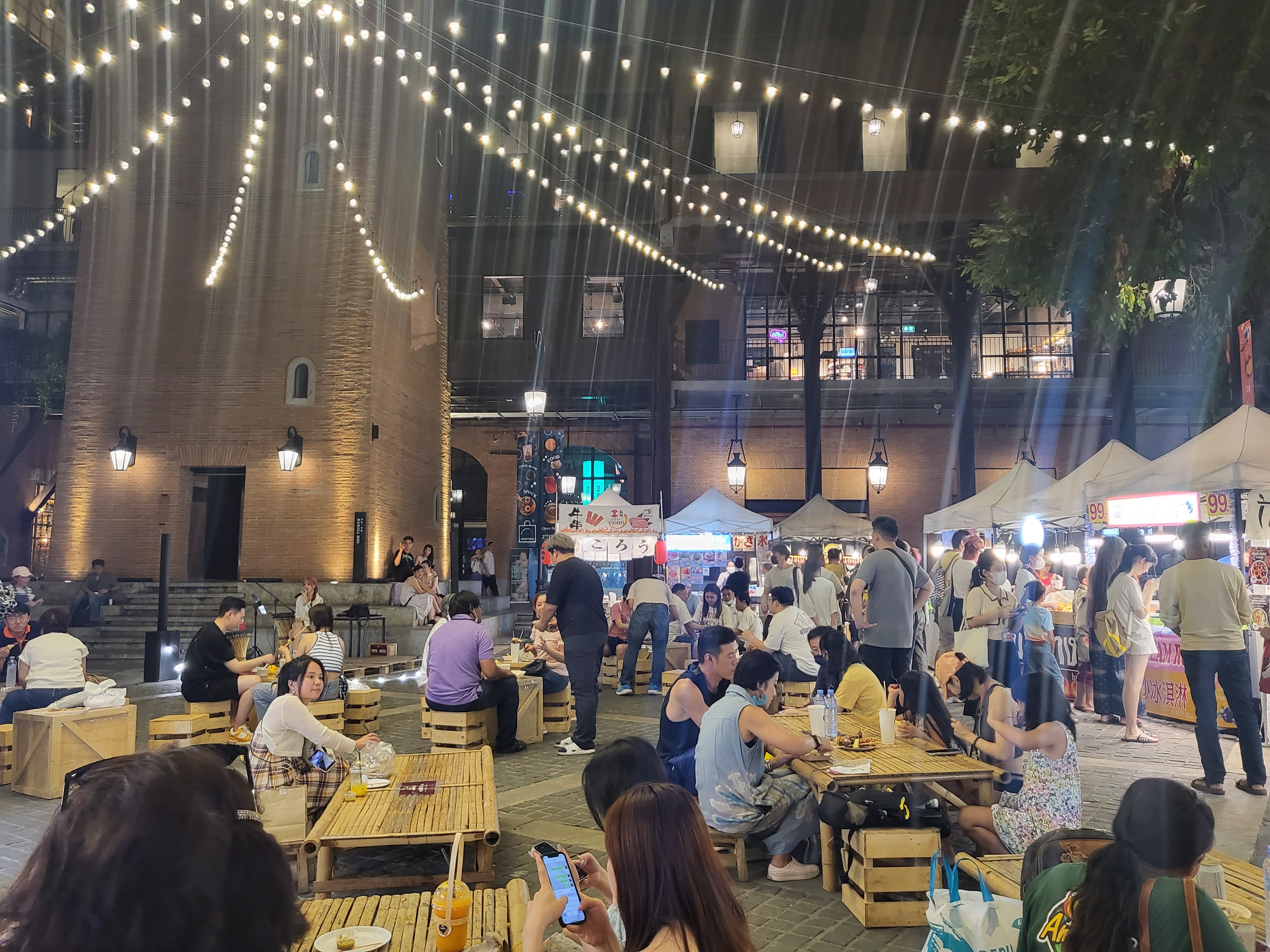 일단 건물 디자인이 유럽 풍이라 이국적이어서 너무 예쁘고 들어와 있는 상점이 다양하고 식당도 많다. 그리고 건물 안에 야외 공간이 있어서 저녁엔 야시장 같이 음식을 파는 점포들이 있고 라이브 음악 공연도 해서 분위가 정말 좋았다...