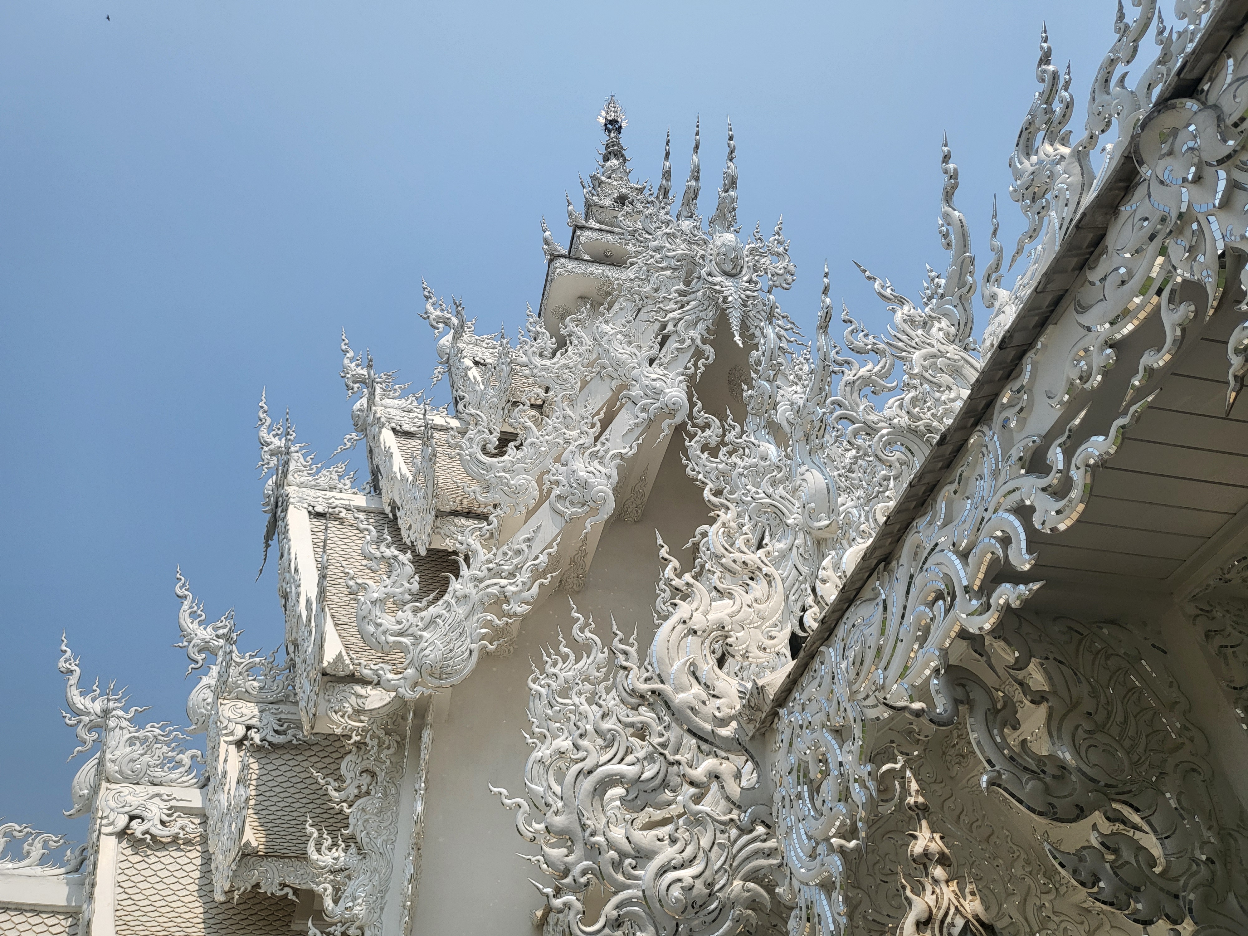 치앙라이 검색하면 가장 먼저 나오는 화이트 템플에 먼저 들렀다. 사원이 온통 하얀색이고 조각들이 정교해서 처음 사진으로 보고 너무 신기해서 감탄했던 기억이 있다. 근데 알고 보니 이게 전통사원이 아니다?