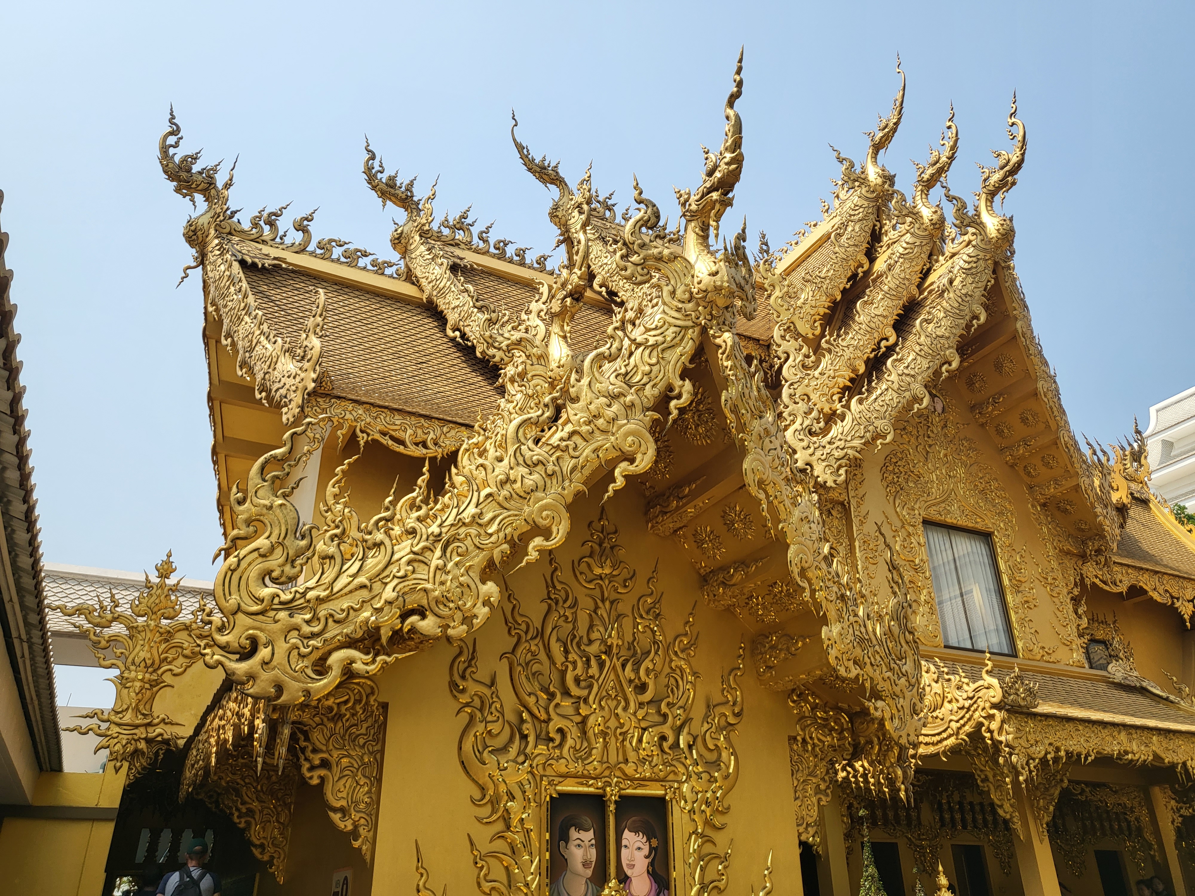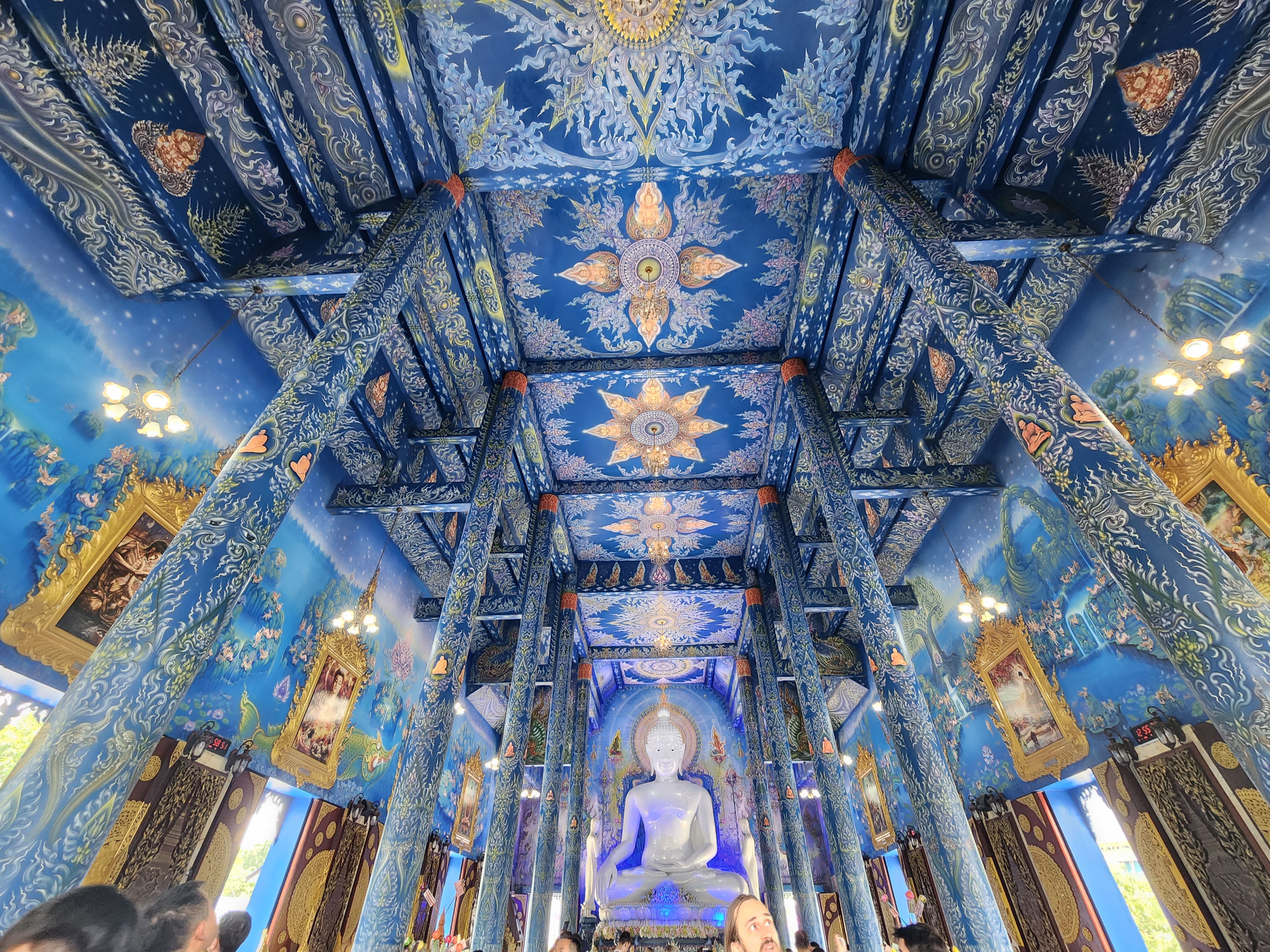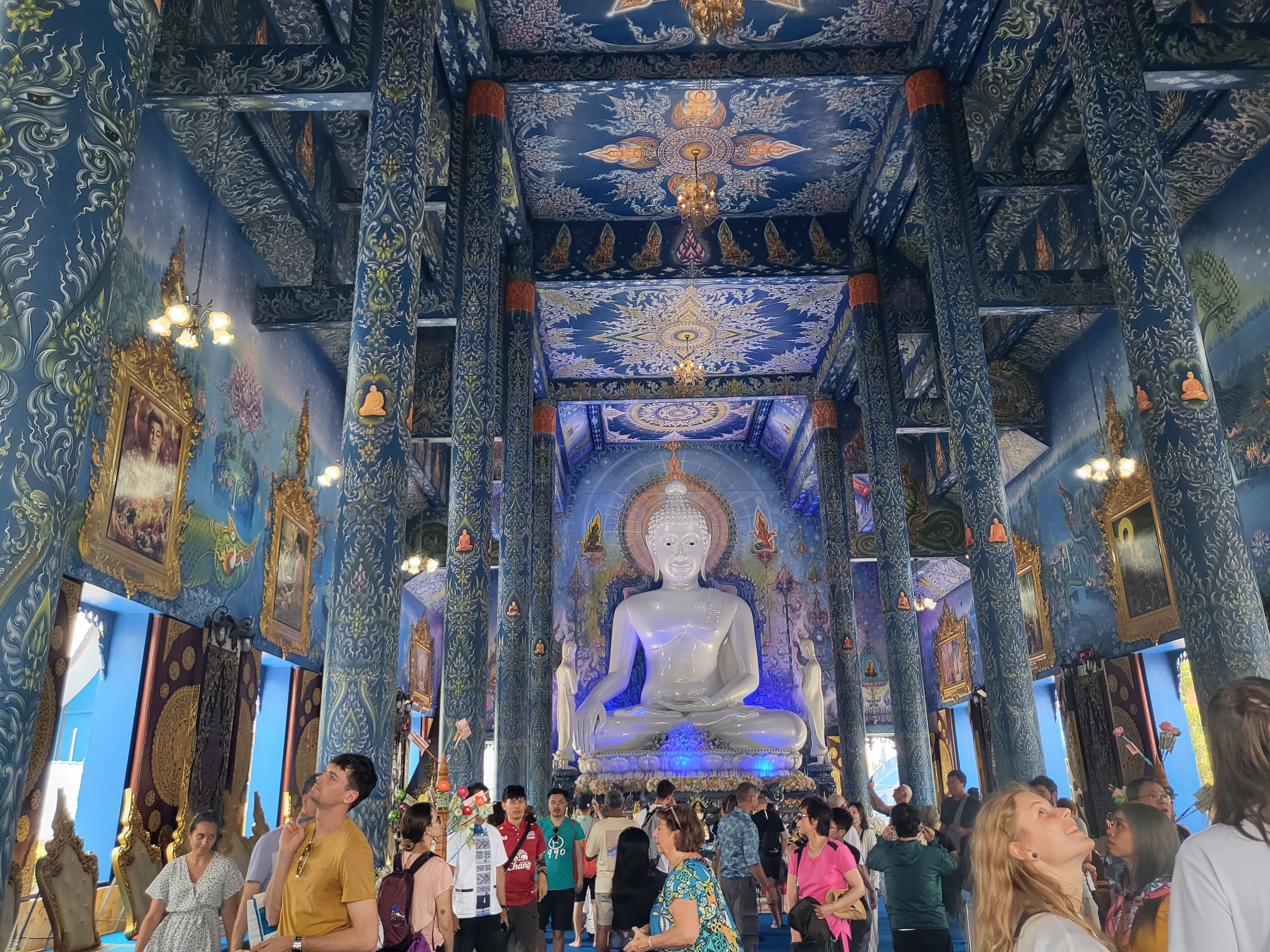 Chaloemchai Khositphiphat이라는 (지금도 젊은) 태국인 건축가가 지은 건물이고 지옥과 천국을 형상화해 만든 건물인데 본당 안에 불상이 있긴한데 벽화에 911 테러가 발생한 그림과 히어로 슈퍼맨, 베트맨부터 세일러문, 미니언즈 등등이 싸우는 모습이 그려져 있다. 현실에는 히어로란 없고 우리들이 고난과 문제를 해결해야 한다는 의미를 갖고 있다고 한다. 보고 좀 허무했다..