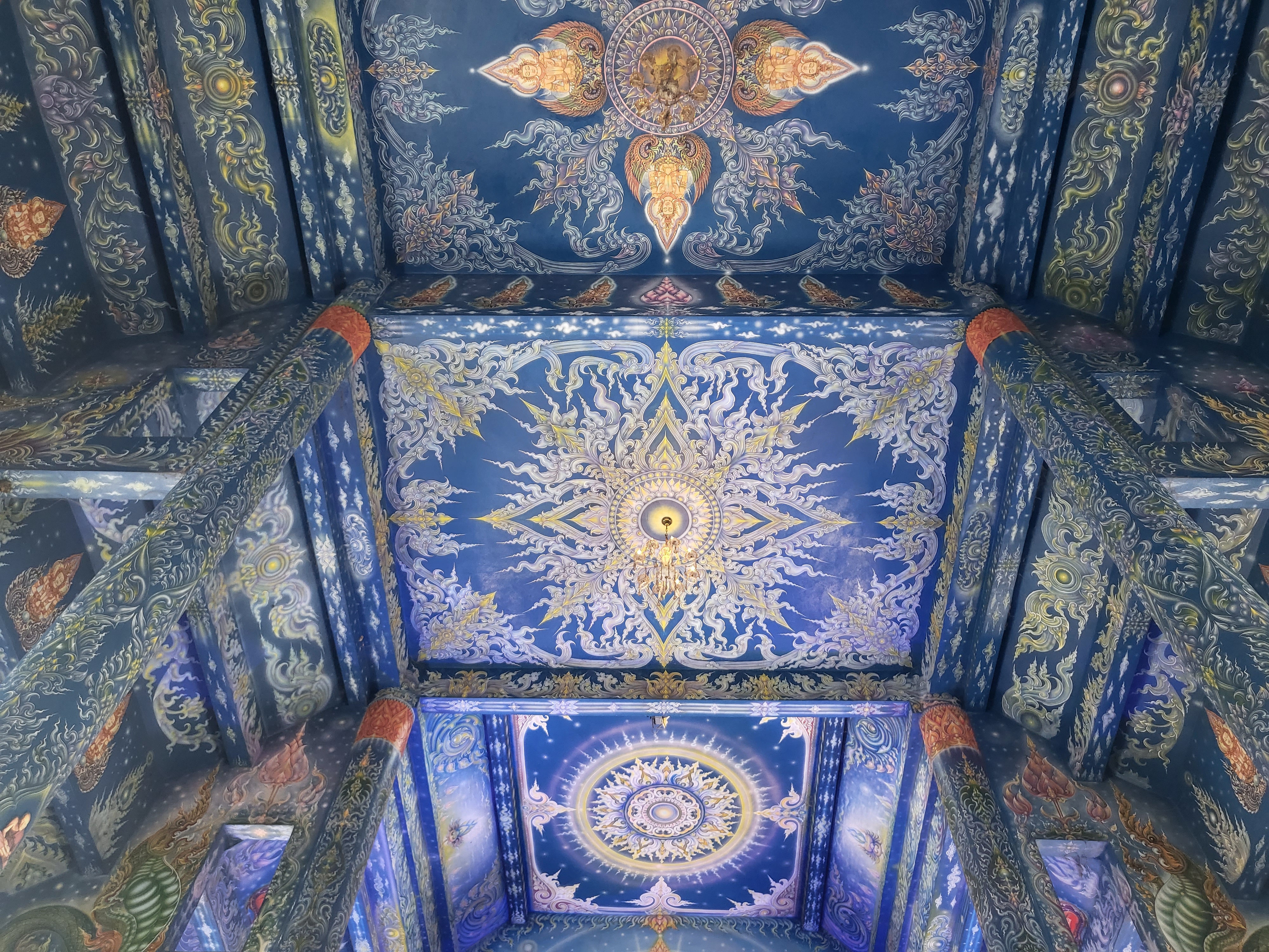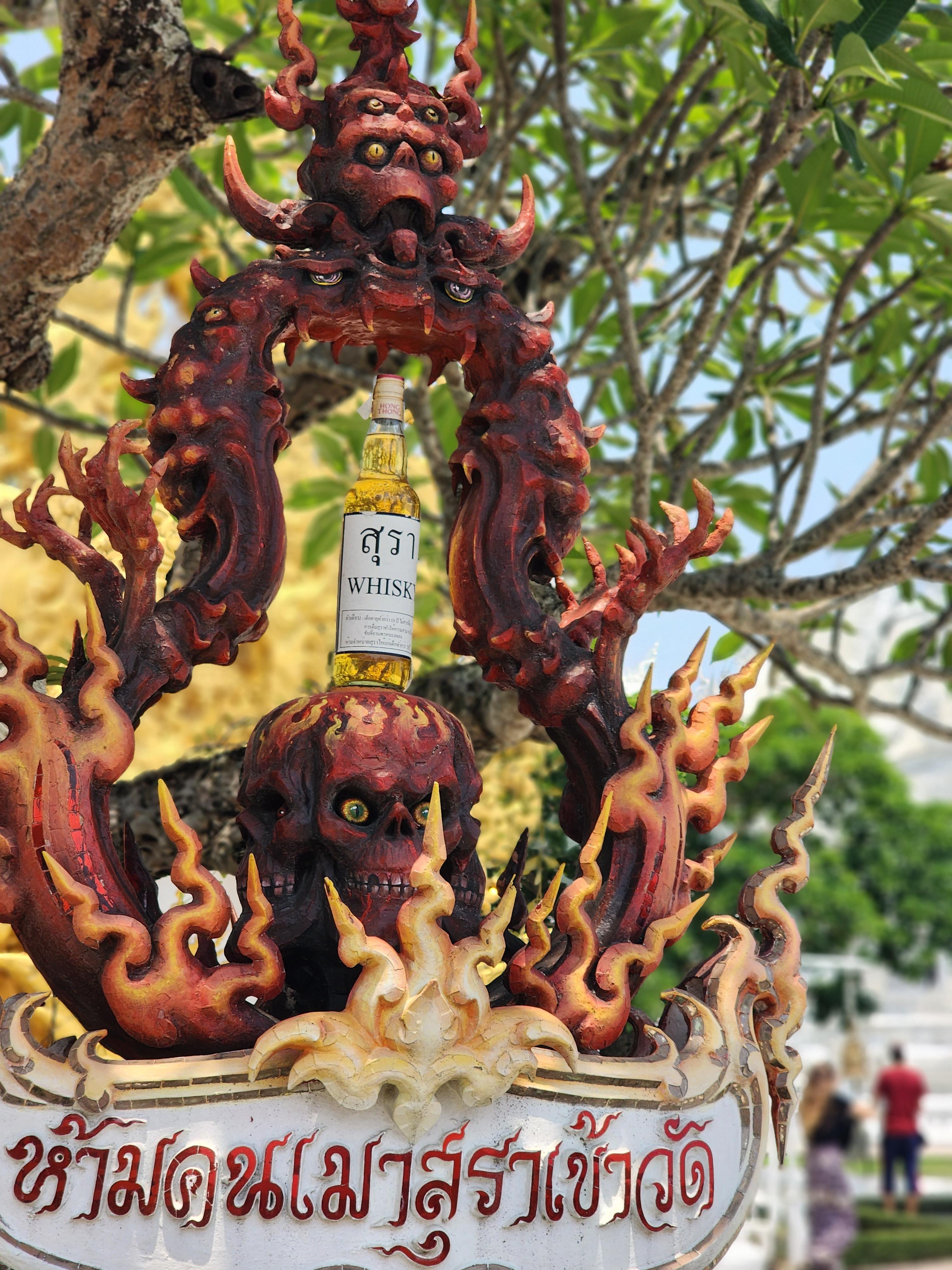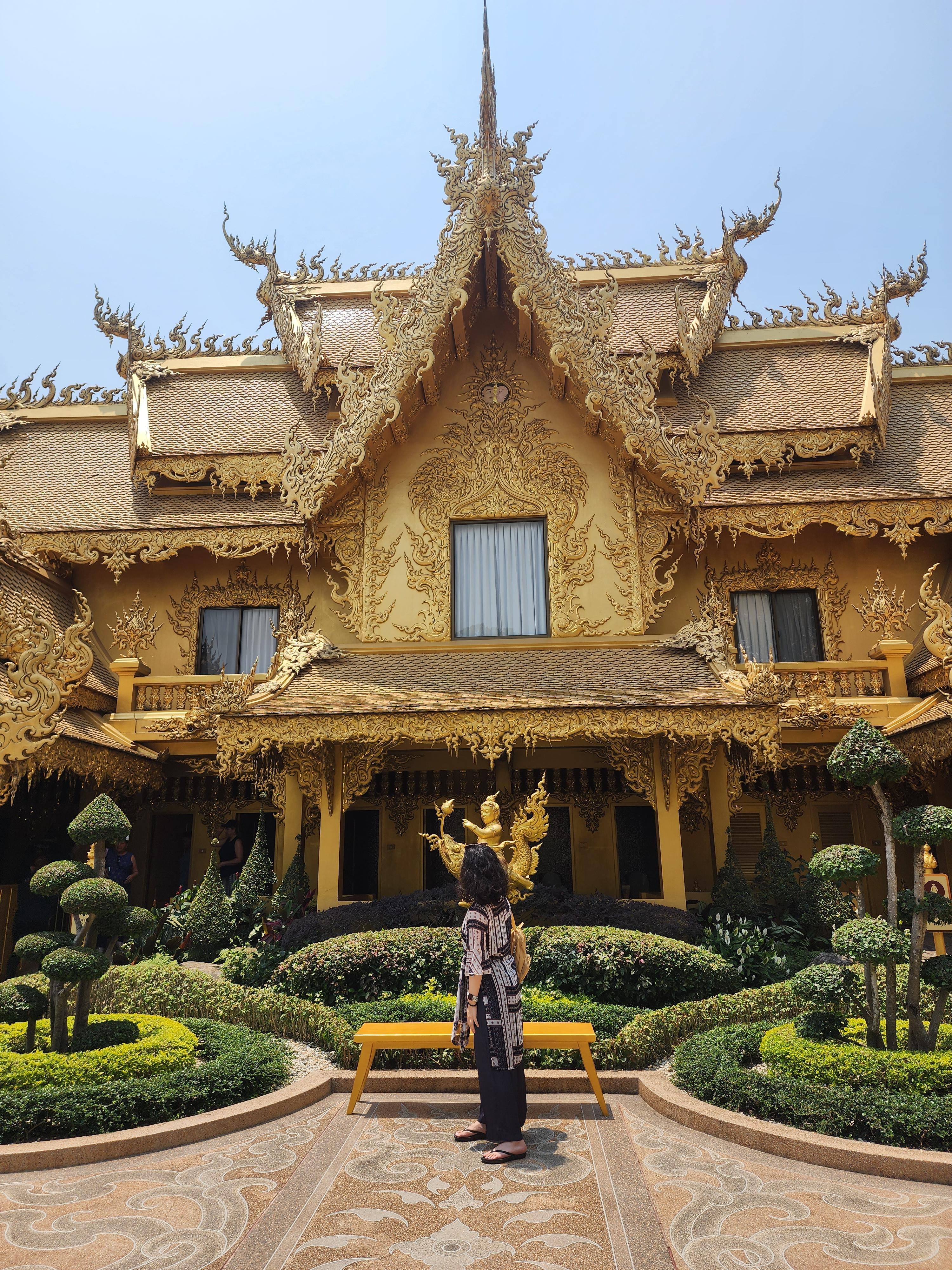 Chaloemchai Khositphiphat이라는 (지금도 젊은) 태국인 건축가가 지은 건물이고 지옥과 천국을 형상화해 만든 건물인데 본당 안에 불상이 있긴한데 벽화에 911 테러가 발생한 그림과 히어로 슈퍼맨, 베트맨부터 세일러문, 미니언즈 등등이 싸우는 모습이 그려져 있다. 현실에는 히어로란 없고 우리들이 고난과 문제를 해결해야 한다는 의미를 갖고 있다고 한다. 보고 좀 허무했다..