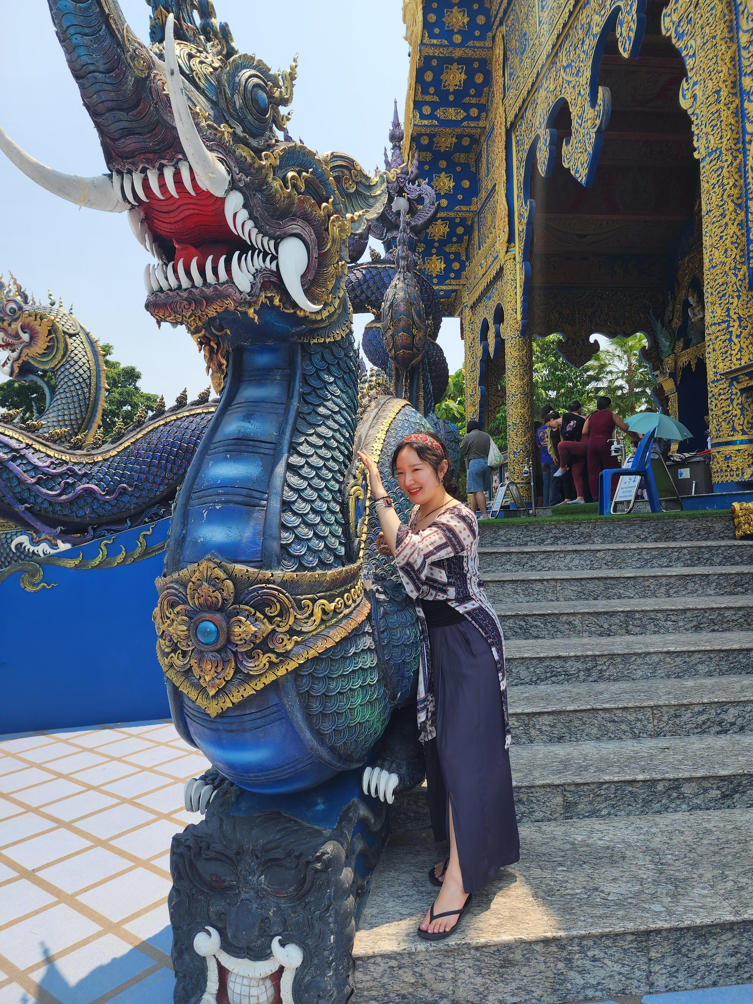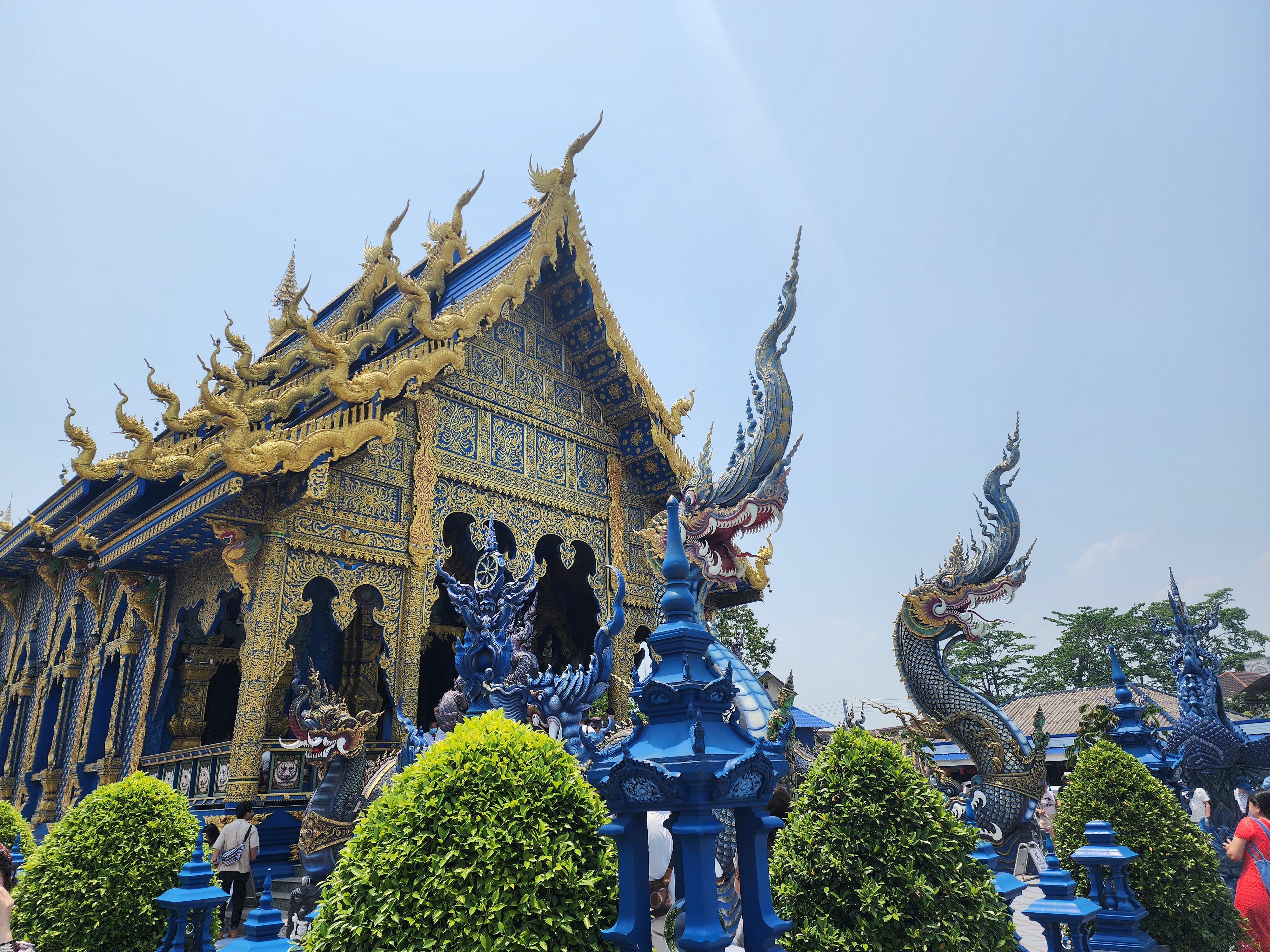 밴으로 이동하는 거였고 총 8-9명인 그룹 투어였는데 우리만 한국인이고 나머지는 유럽과 러시아 사람들이었다. 거리가 꽤 돼서 아침 일찍 치앙마이에 있는 호텔로 픽업 오고 저녁에 치앙마이로 다시 돌아오는 거라 하루가 다 소비됐다. 치앙라이의 랜드마크인 화이트 템플, 블루 템플, 블랙 하우스 총 세 곳을 찍고 오는 일정인데 사원들이 생각보다 인위적이었고 차로 이동하는 게 힘들어서 고생을 했다. 근데 이거라도 안 다녀왔음 치앙마이 여행에서 남는 사진이 없었을 듯...