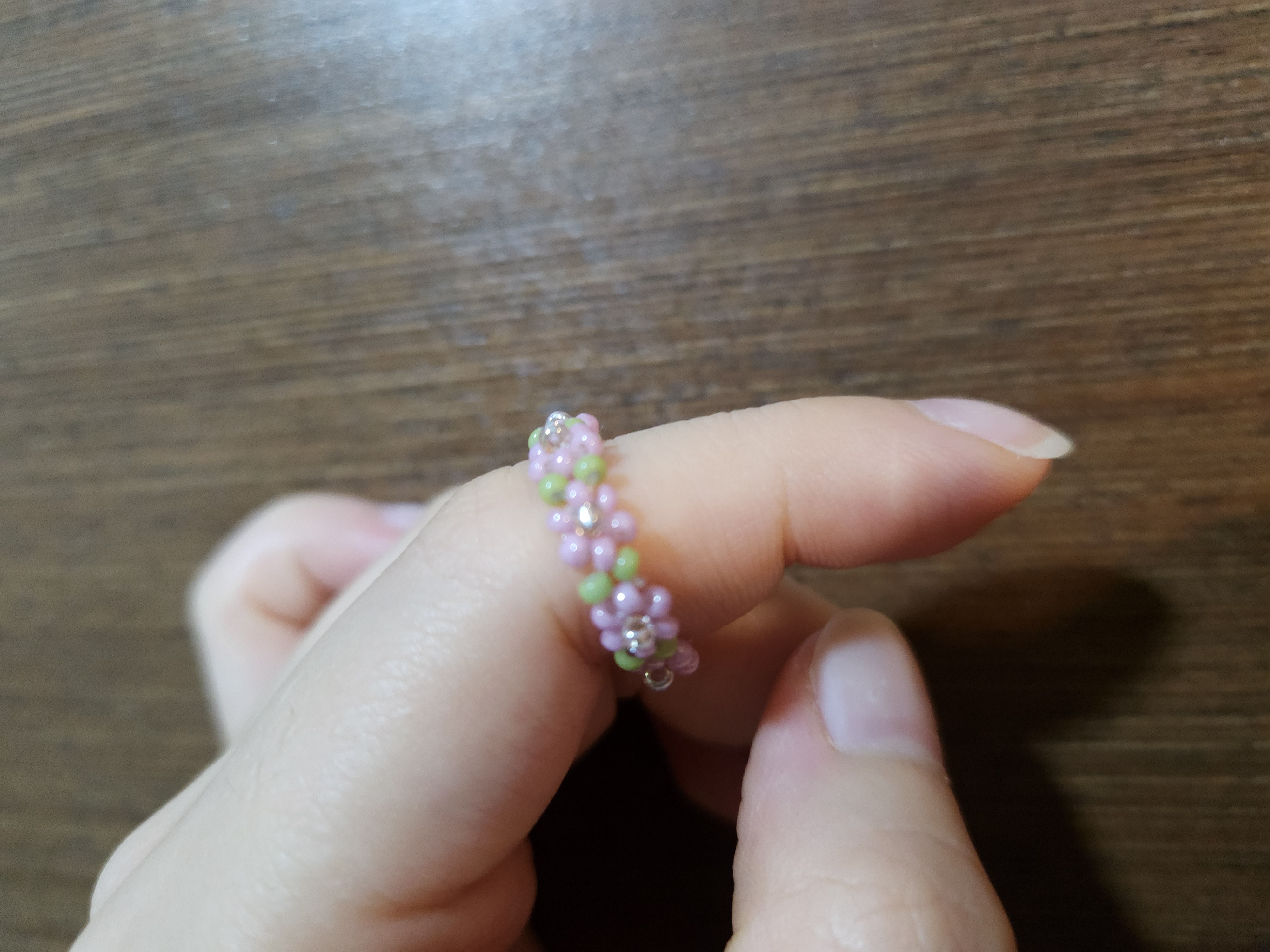 비즈반지다 보니 퀄리티는 기대 안 했는데 굉장히 쫀쫀해서 절대 안 끊어질 거 같은 느낌이다. 디자인도 특이하고! 잘 산거 같다.