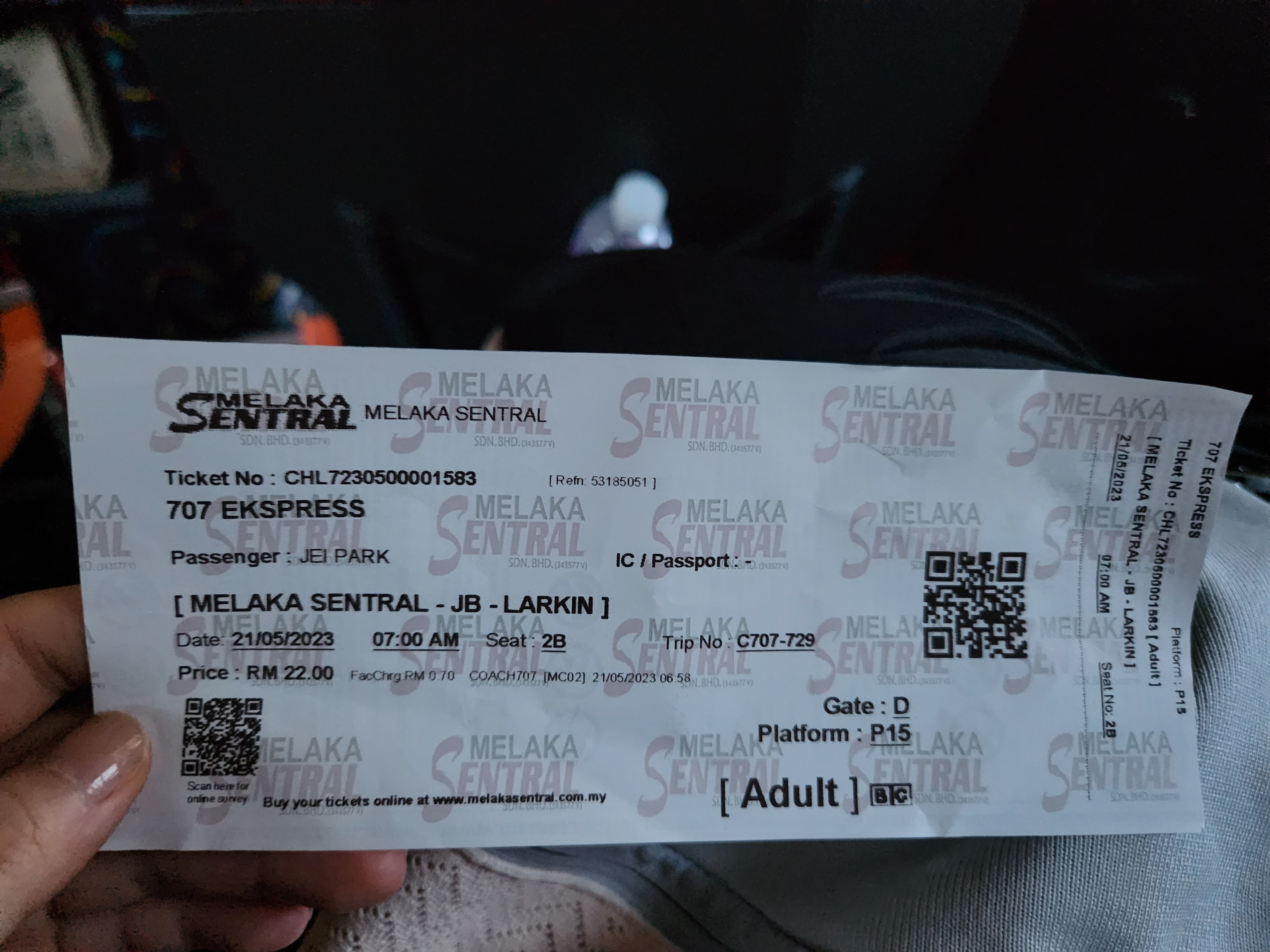 아침 7시 버스라 일찍 일어나 그랩을 타고 Melaka Sentral Bus Terminal에 도착했다. 아침이라 그런지 그랩이 안 잡혀서 시간이 오래 걸려 7시에 딱 도착했는데 여기도 창구에서 버스티켓을 교환해야 했다. 터미널이 굉~장히 커서 헤매다가 하마터면 버스 못 탈 뻔했다..ㅠㅠ 꼭 미리 도착하세요..