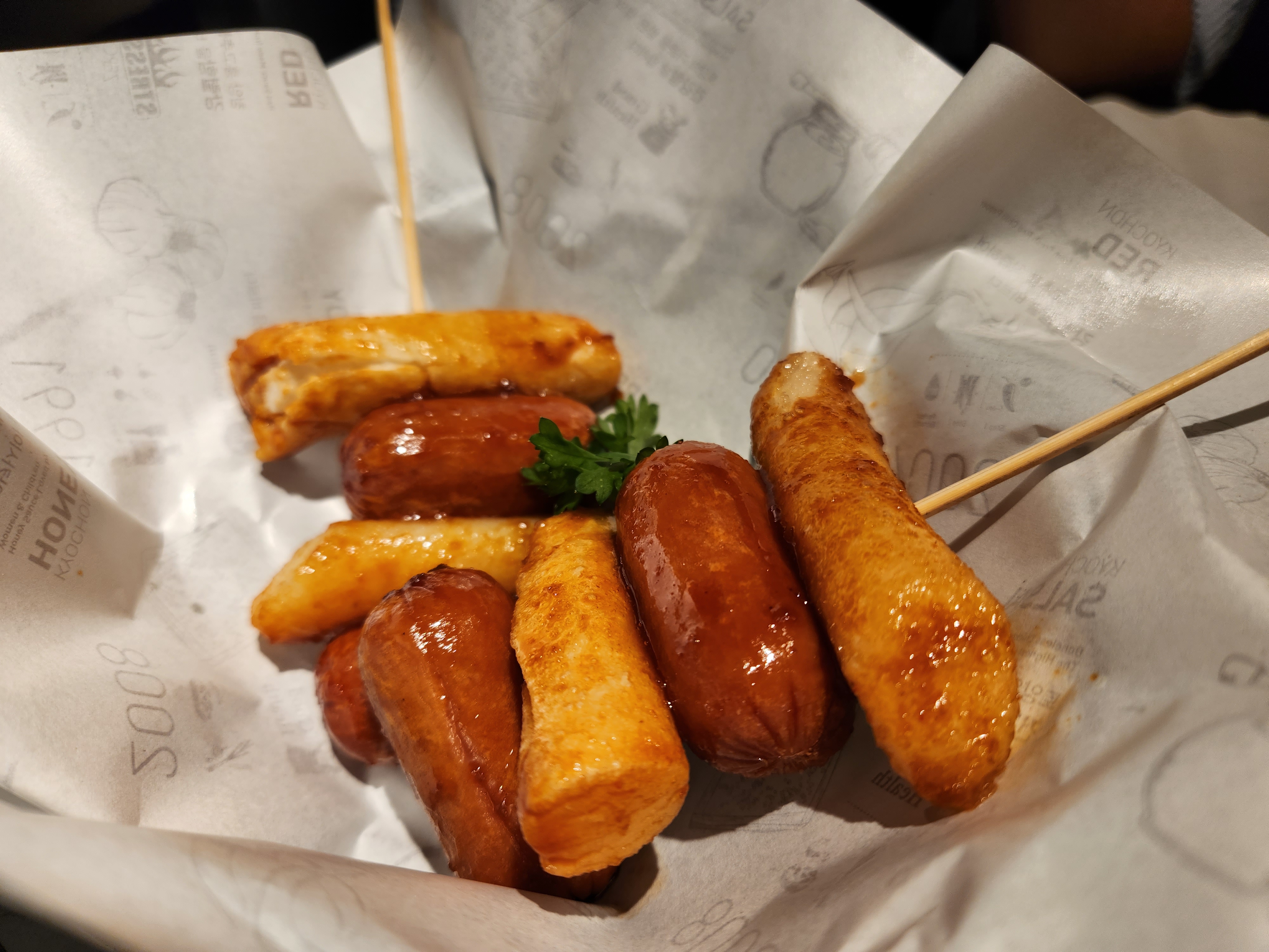 소떡소떡이랑 허니 치킨 반 마리를 시켰다.