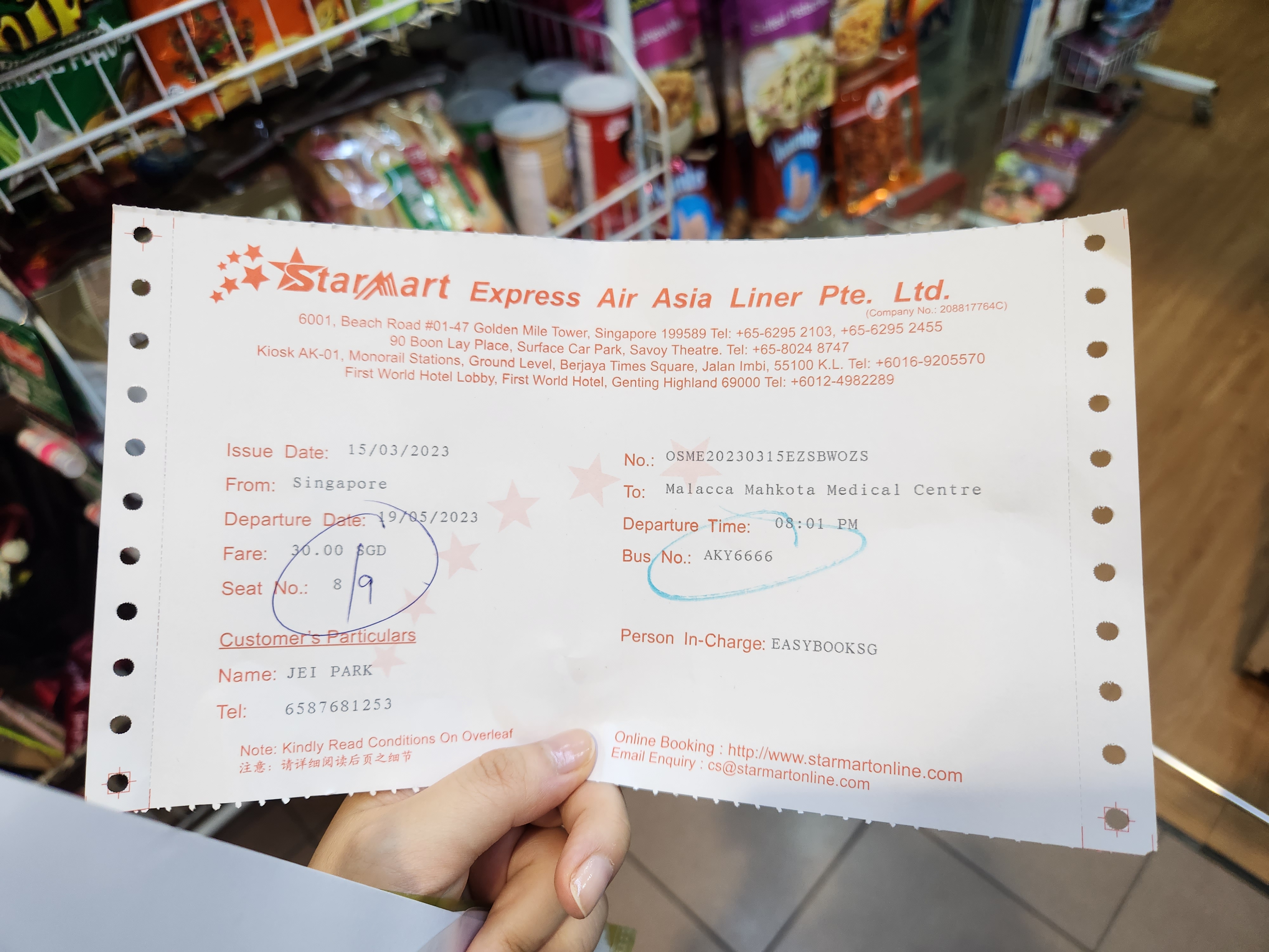 이전에 포스팅한대로 버스는 아래 Easybook에서 1인 30SGD(약 29,600원)에 예약했다.