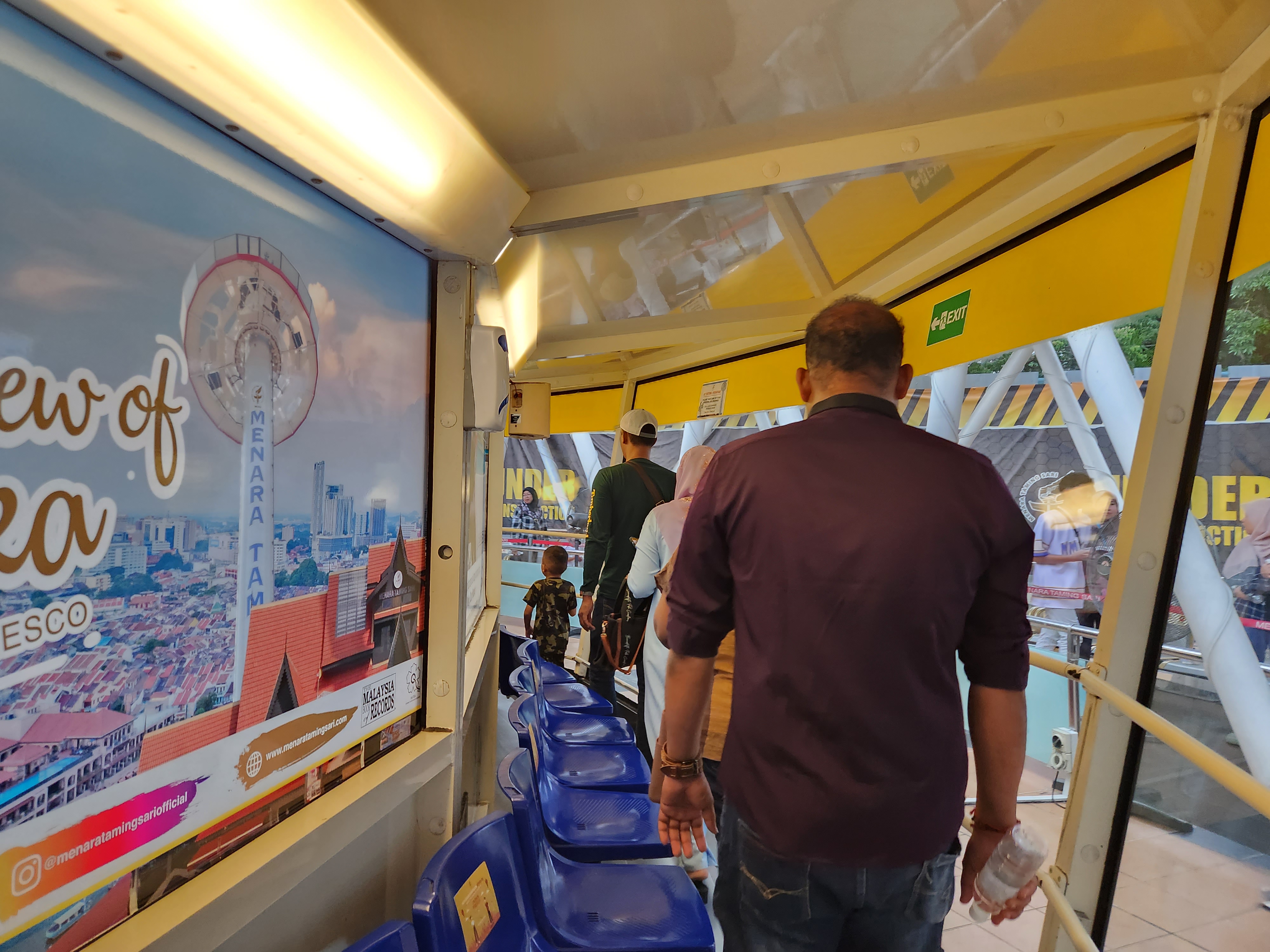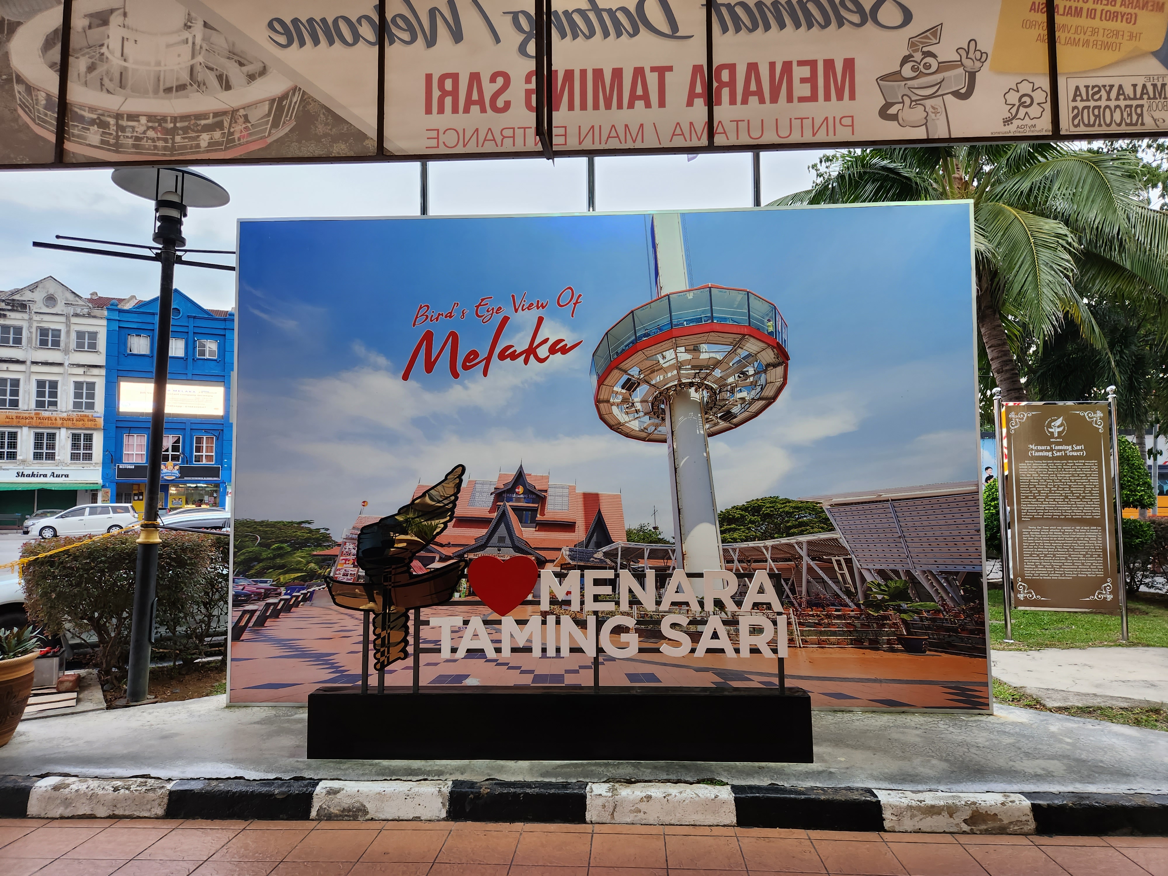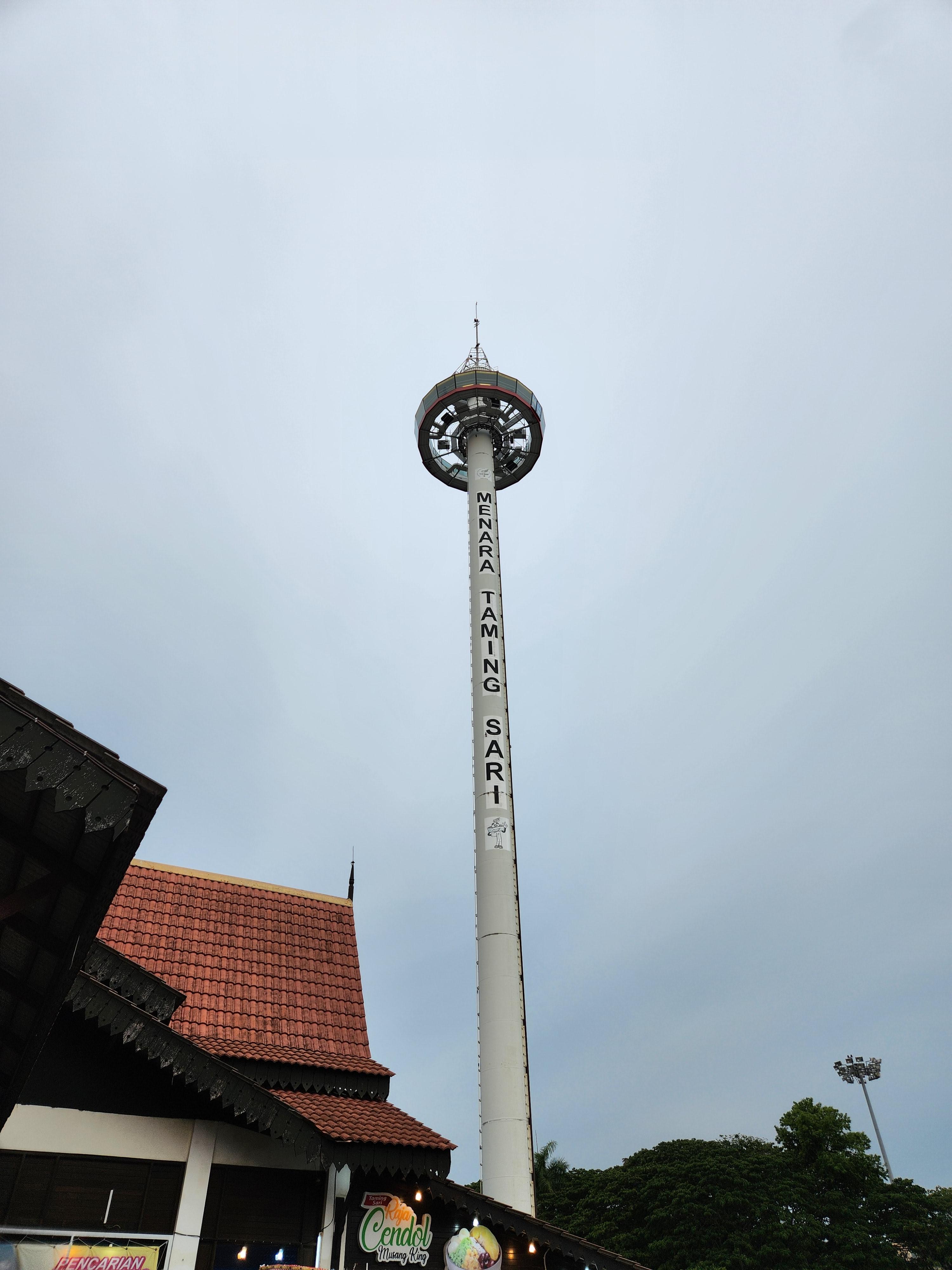 찾아보니 타밍 사리 타워 Menara Taming Sari이라고 2008년에 생긴 움직이는 전망대였다. 멀리서 보기에는 돌아가는 속도나 오르락내리락하는 속도가 빨라서 말레이시아에서 죽을 순 없다고 절대 타지 말자고 말했었는데... 그 뒤로 자꾸 생각이 나서 왠지 안 타면 후회할 거 같아 충동적으로 타러 갔다.