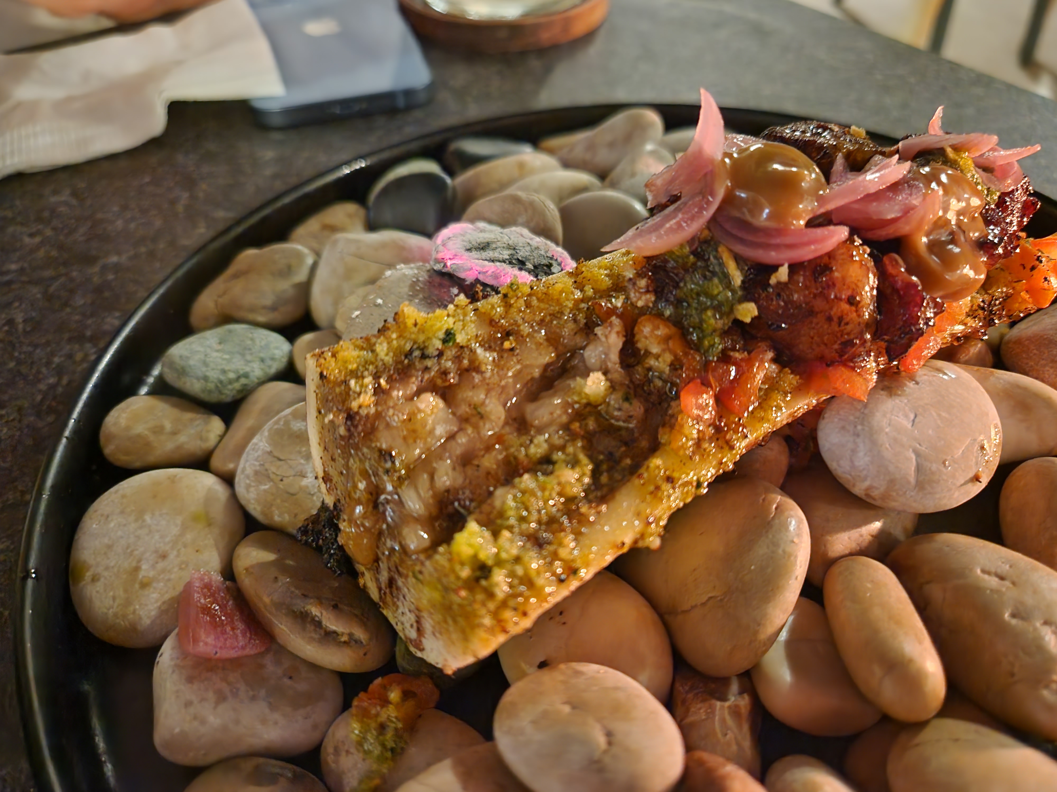 근데 돌 위에 세팅되어 나오고 골수 위에 술을 뿌려 불쇼도 해주고 해서 보는 맛이 있었다.